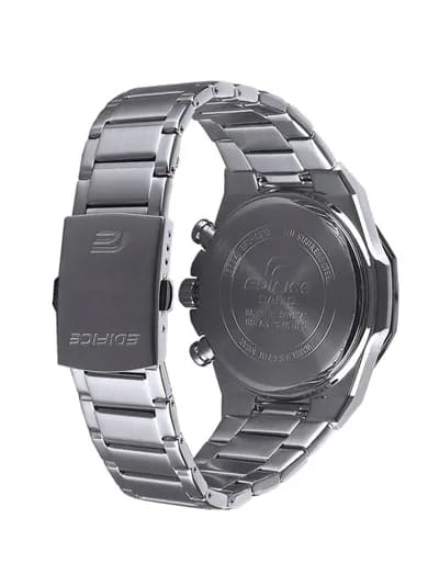 Модель Casio Edifice EFS-S570D-3A сочетает элегантный дизайн с передовыми технологиями. Корпус из нержавеющей стали диаметром 44 мм и толщиной всего 9,7 мм обеспечивает комфортное ношение, а восьмиугольный безельБезельВнешний ободок, закрепляющий стекло. В спортивных часах так называется поворотное кольцо с делениями на циферблате, выполняет роль таймера – замеряет отрезки времени на шкале. Неподвижный безель – элемент декора. Однонаправленно вращающийся безель на дайверских часах позволяет фиксировать моменты погружения и выныривания на поверхность. с матовой отделкой придаёт спортивный и стильный вид. Часы оснащены солнечной батареейTough SolarТехнология основана на подзарядке аккумулятора от источника солнечного света, специальная панель улавливает солнечные лучи и преобразует их в энергию для работы часов. Достаточно пары минут нахождения на солнце для функционирования часов в течении суток., обеспечивающей стабильную работу без необходимости замены элемента питания. Сапфировое стеклоСапфировое стеклоПрочный и надёжный материал из кристалла сапфира синтетического происхождения, характеризующийся особой твёрдостью и устойчивостью к царапинам и повреждениям. с антибликовым покрытием защищает циферблат от царапин и улучшает читаемость. Функциональность модели включает хронографХронографФункция позволяет измерять отрезки времени с особой точностью: часы, минуты, секунды. Верным признаком хронографа является наличие на циферблате 3 дополнительных окошек-счётчиков. с точностью до 1 секунды и максимальным временем измерения 59 минут 59 секунд, а также индикацию датыВечный календарьКлассическое часовое усложнение, представляющее собой календарь, рассчитанный на несколько лет вперёд (стандартно – до 2099 года). Определяет текущую дату, день недели, месяц.. Водонепроницаемость до 100 метров делает эти часы подходящими для плавания и других водных активностей. Casio Edifice EFS-S570D-5A — это стильный и функциональный аксессуар для тех, кто ценит надежность и современные технологии.