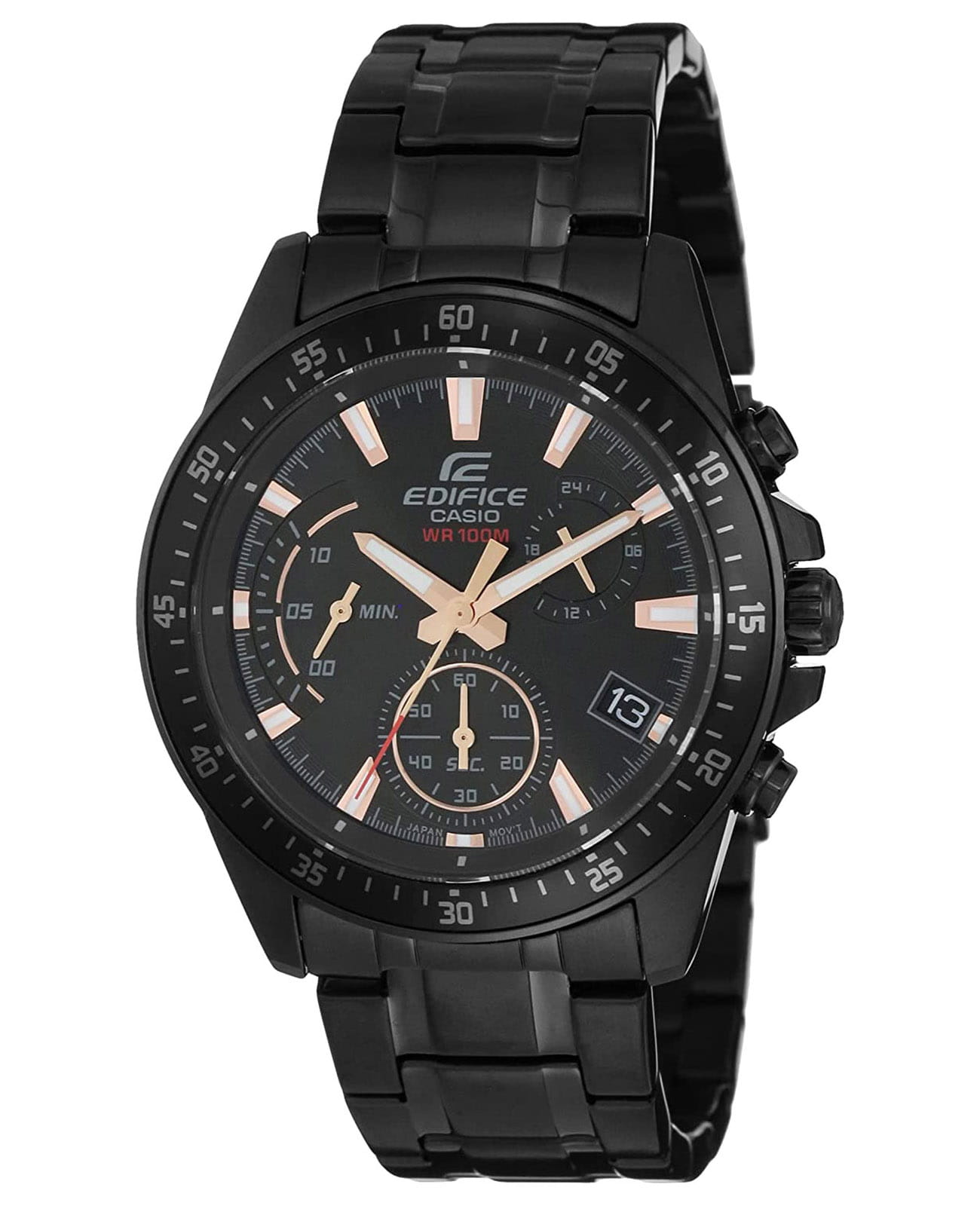 Японские мужские часы с хронографом Casio Edifice EFV-540DC-1BVUDF (EFV-540DC-1B), кварцевый механизм с высокой точностью. Класс водозащиты: 100 метров, позволит плавать, нырять и заниматься другими водными видами спорта. Корпус часов изготовлен из стали, цвета.