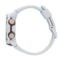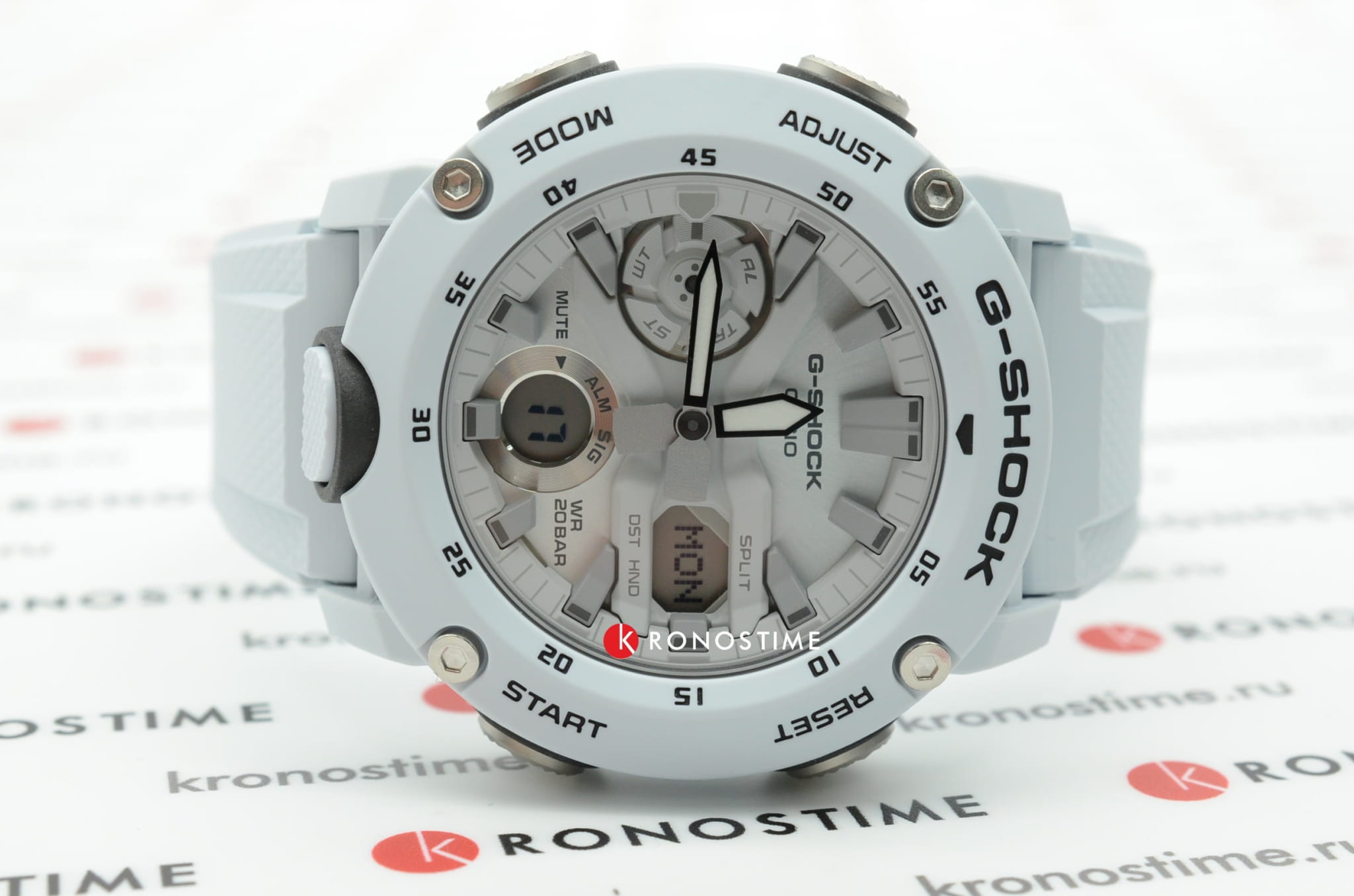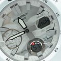 Наручные часы в белоснежном исполнении реализуют технологию Carbon Core GuardCarbon Core Guard Новейшая структура корпуса, разработанная Casio. Полиуретановая пластина дополнительно усилена карбоновыми вставками, что придаёт специальную защиту от механических повреждений. Карбон отличается лёгкостью и прочностью., карбон послужил материалом для изготовления противоударного корпусаУдаропрочный корпусМеханизм заключён в корпус, выполненный из современных материалов, устойчивых к ударам, механическим повреждениям и падению с высоты: инновационный пластик, карбон, нержавеющая сталь, титан.. Это позволило добиться повышенной устойчивости к ударам и падению без утяжеления общей конструкции. БезельБезельВнешний ободок, закрепляющий стекло. В спортивных часах так называется поворотное кольцо с делениями на циферблате, выполняет роль таймера – замеряет отрезки времени на шкале. Неподвижный безель – элемент декора. Однонаправленно вращающийся безель на дайверских часах позволяет фиксировать моменты погружения и выныривания на поверхность. оставлен полимерным. Японский кварцевый механизм работает за счёт батарейки, срок службы которой - 3 года. Закаленное минеральное стекло. Двойная задняя крышка, стальная и пластиковая. Светодиодная подсветкаСветодиодная подсветкаСветодиодная или LED-подсветка обеспечивает появление яркого холодного свечения за счёт LED-элементов - маленьких лампочек. Они потребляют минимальное количество энергии, чаще всего можно встретить 1 светодиод, в нижней части циферблата.. Водонепроницаемость 200 метров. Возможность быстрой и лёгкой замены полимерного ремешка. ХронографХронографФункция позволяет измерять отрезки времени с особой точностью: часы, минуты, секунды. Верным признаком хронографа является наличие на циферблате 3 дополнительных окошек-счётчиков., автоматический календарь, мировое времяМировое время Полезное часовое усложнение, отображающее время в основных городах и известных областях по всему миру, оно связано с часовыми поясами, удобно для путешественников и бизнесменов. , будильник, секундомер, таймер с автоповтором. Габариты: 48,7 x 51,2 x 14,1 мм.
