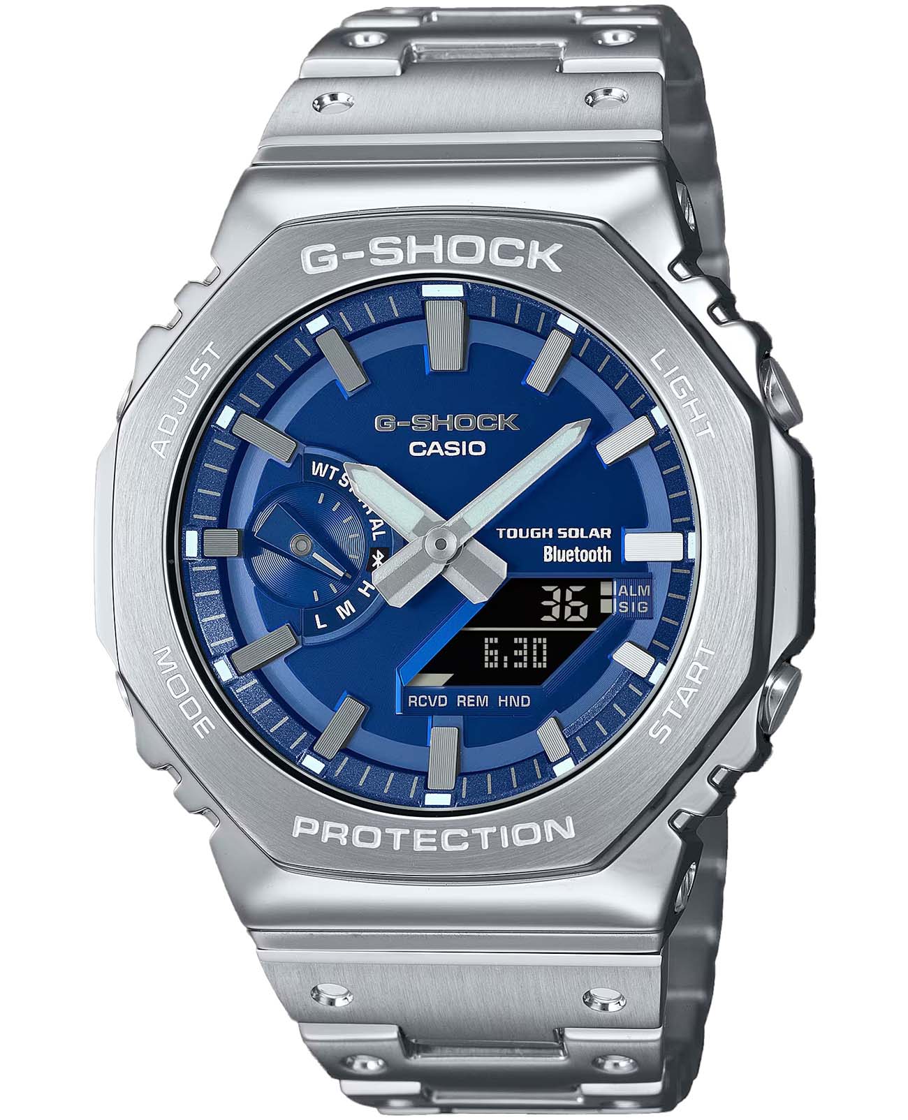 Японские мужские часы-хронографХронографФункция позволяет измерять отрезки времени с особой точностью: часы, минуты, секунды. Верным признаком хронографа является наличие на циферблате 3 дополнительных окошек-счётчиков. Casio G-Shock GM-B2100AD-2A. Стильный дизайн этих часов идеально дополняет функциональность и надежность. Часы для активной молодежи G-Shock. Стальной корпус. Питание от солнечной энергии Tough SolarTough SolarТехнология основана на подзарядке аккумулятора от источника солнечного света, специальная панель улавливает солнечные лучи и преобразует их в энергию для работы часов. Достаточно пары минут нахождения на солнце для функционирования часов в течении суток. - солнечные батарейки большой мощности. Индикатор заряда батареи. Функция автоматического сохранения энергии. Время работы аккумулятора без подзарядки - 7 месяцев, при включенной функции сохранения энергии - 18 месяцев. Минеральное стеклоМинеральное стеклоМинеральное стекло представляет собой искусственно выращенный минерал кварца. Такое стекло отличается особой устойчивостью к повреждениям и царапинам. Уступает по некоторым качествам сапфировому стеклу. устойчивое к появлению царапин, обладающее высокой прозрачностью. Ударопрочный корпусУдаропрочный корпусМеханизм заключён в корпус, выполненный из современных материалов, устойчивых к ударам, механическим повреждениям и падению с высоты: инновационный пластик, карбон, нержавеющая сталь, титан. защищает механизм от ударов и вибрации. Светодиодная автоподсветка NeobriteПодсветка NeobriteИспользование светонакопительных составов на основе сульфида цинка или алюмината стронция, яркий свет можно наблюдать на протяжении 6-10 часов после «зарядки» часов около источника света. - при повороте часов в сторону лица подсветка дисплея осуществляется автоматически. Настраиваемое послесвечение 1,5 или 3сек. Мировое время Мировое время Полезное часовое усложнение, отображающее время в основных городах и известных областях по всему миру, оно связано с часовыми поясами, удобно для путешественников и бизнесменов. 38 городов (38 часовых поясов), всемирное координированное время UTCUTCВсемирное кординационное время, не имеющее привязки к географическому положению Гринвича, основывается на атомном отсчёте времени. Регулировка времени осуществляется более точно, чем устаревшее GMT.