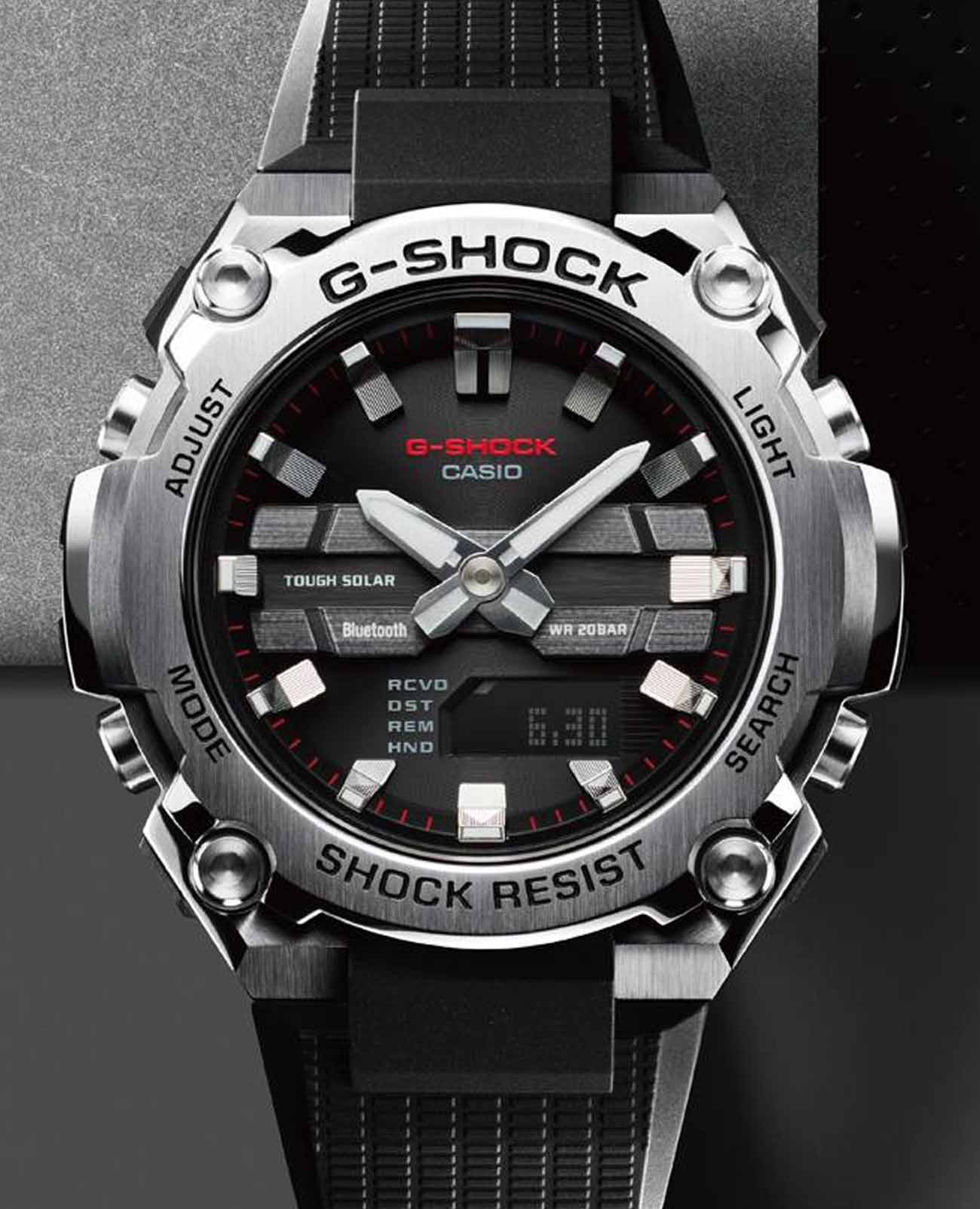 Японские мужские часы-хронографХронографФункция позволяет измерять отрезки времени с особой точностью: часы, минуты, секунды. Верным признаком хронографа является наличие на циферблате 3 дополнительных окошек-счётчиков. Casio G-Shock GST-B600-1ADR. Минеральное стеклоМинеральное стеклоМинеральное стекло представляет собой искусственно выращенный минерал кварца. Такое стекло отличается особой устойчивостью к повреждениям и царапинам. Уступает по некоторым качествам сапфировому стеклу. устойчивое к появлению царапин, обладающее высокой прозрачностью. Ударопрочный корпусУдаропрочный корпусМеханизм заключён в корпус, выполненный из современных материалов, устойчивых к ударам, механическим повреждениям и падению с высоты: инновационный пластик, карбон, нержавеющая сталь, титан. из наржавеющей стали защищает механизм от ударов и вибрации. Tough SolarTough SolarТехнология основана на подзарядке аккумулятора от источника солнечного света, специальная панель улавливает солнечные лучи и преобразует их в энергию для работы часов. Достаточно пары минут нахождения на солнце для функционирования часов в течении суток.. Светодиодная подсветкаСветодиодная подсветкаСветодиодная или LED-подсветка обеспечивает появление яркого холодного свечения за счёт LED-элементов - маленьких лампочек. Они потребляют минимальное количество энергии, чаще всего можно встретить 1 светодиод, в нижней части циферблата. освещает весь циферблат, после отпускания кнопки свечение продолжается еще некоторое время. Настраиваемое послесвечение 1,5 или 3сек. Мировое время Мировое время Полезное часовое усложнение, отображающее время в основных городах и известных областях по всему миру, оно связано с часовыми поясами, удобно для путешественников и бизнесменов. 38 городов (38 часовых поясов), всемирное координированное время UTCUTCВсемирное кординационное время, не имеющее привязки к географическому положению Гринвича, основывается на атомном отсчёте времени. Регулировка времени осуществляется более точно, чем устаревшее GMT.