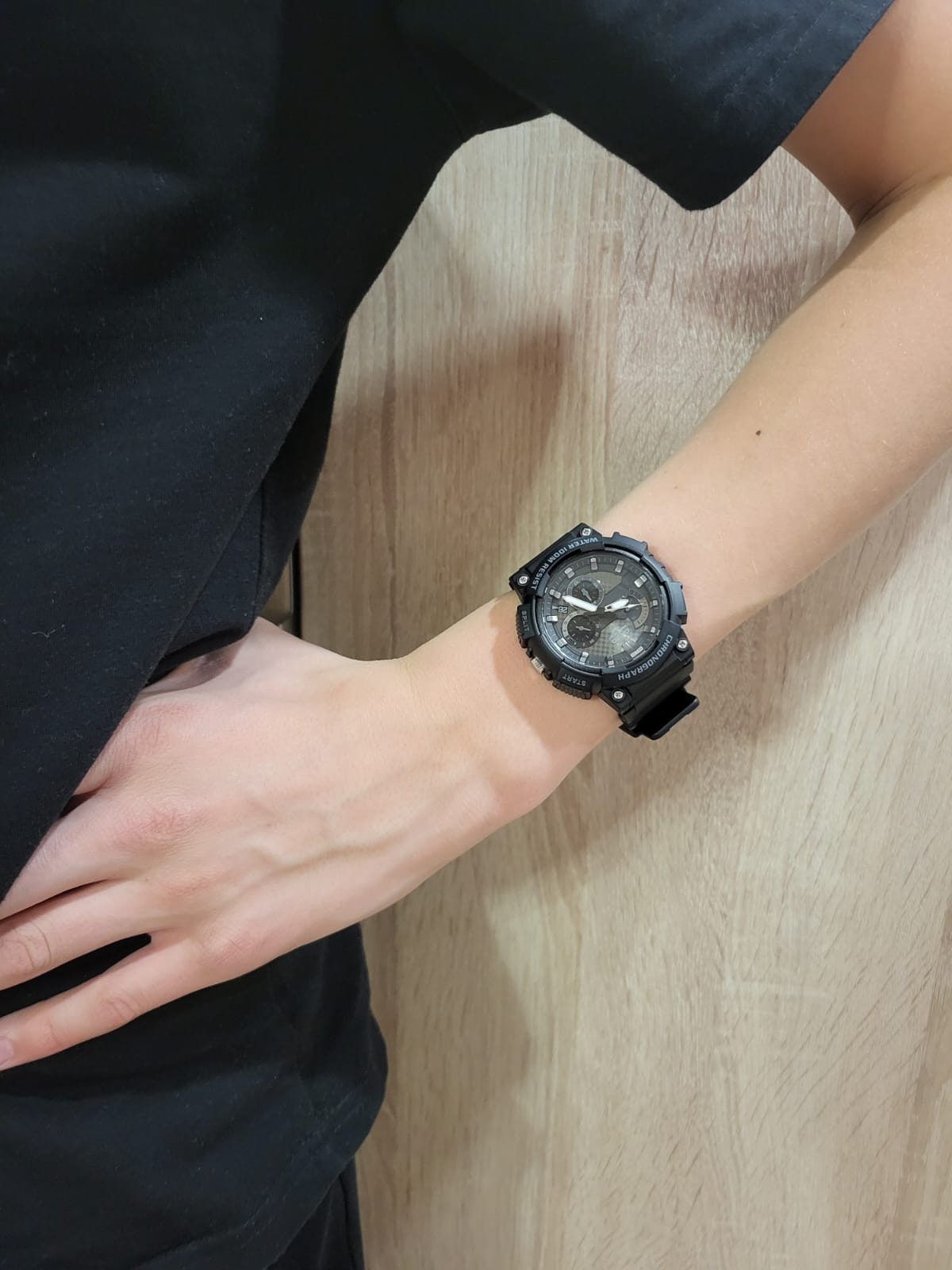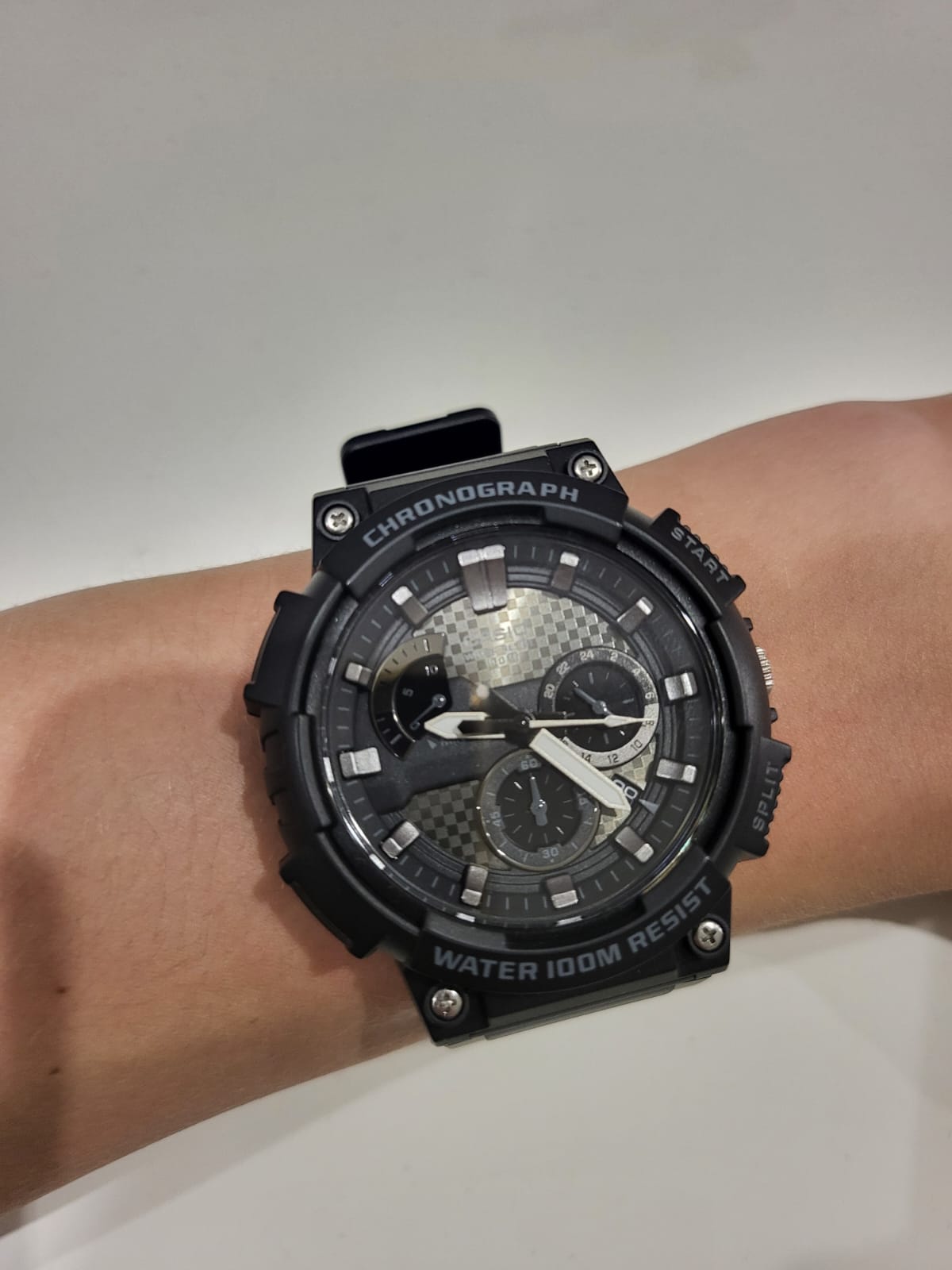 Эргономичные и функциональные часы понравится современному мужчине, который отдает предпочтение практичным вещам. Часы-хронографХронографФункция позволяет измерять отрезки времени с особой точностью: часы, минуты, секунды. Верным признаком хронографа является наличие на циферблате 3 дополнительных окошек-счётчиков. с секундомеромСекундомерСекундоме́р — прибор, способный измерять интервалы времени с точностью до долей секунды. с точностью показаний 1с и временем измерения 10мин. Ретроградный указатель минутной стрелки хронографа. 12-ти и 24-х часовой формат времени. Метки в виде штрихов. Окошко даты находится между метками 4 и 5 часов. Заводная головка с защитой.