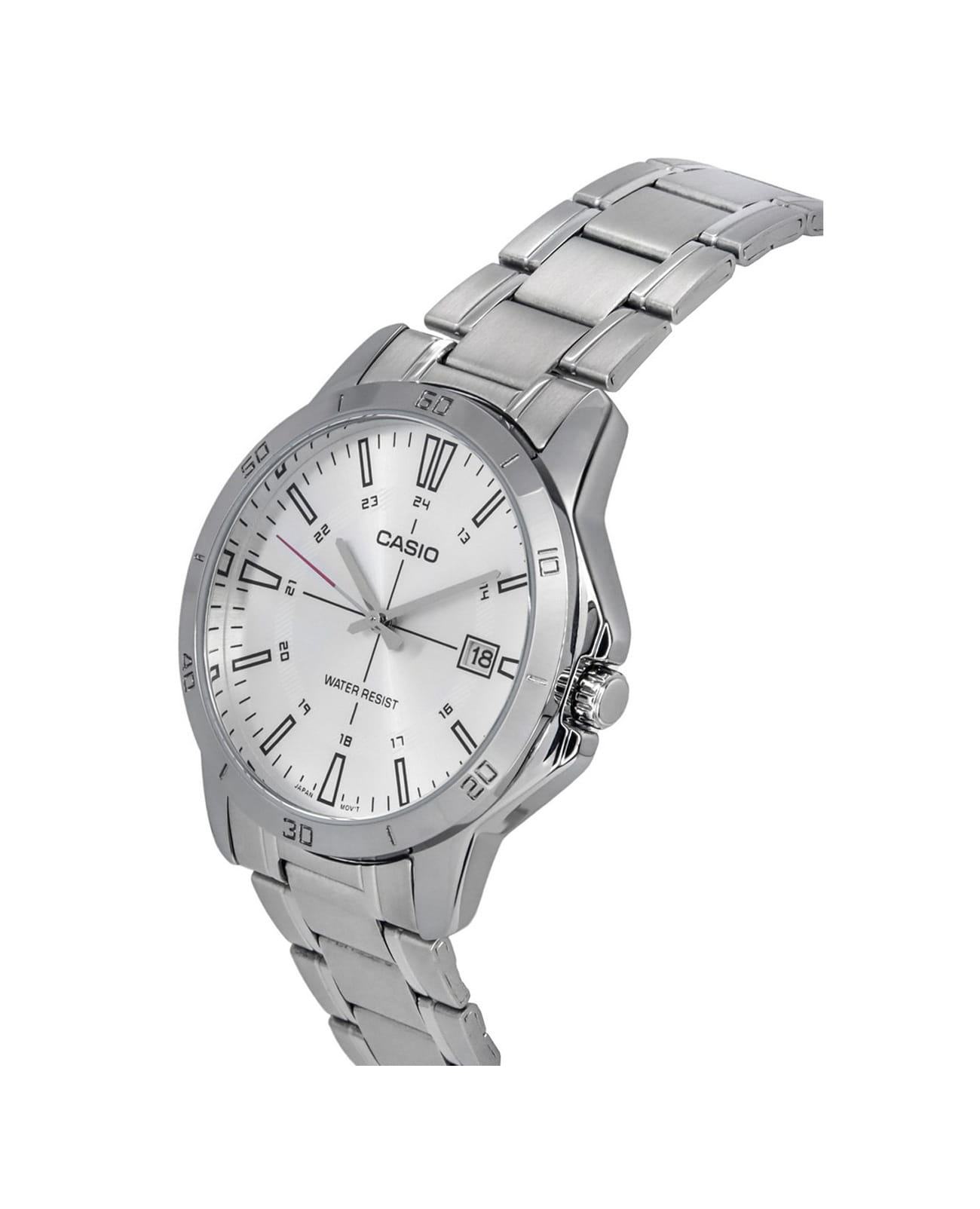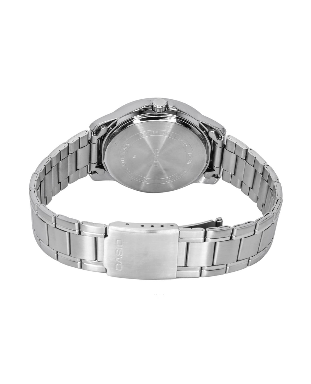 Японские мужские кварцевые часы с минеральным стекломМинеральное стеклоМинеральное стекло представляет собой искусственно выращенный минерал кварца. Такое стекло отличается особой устойчивостью к повреждениям и царапинам. Уступает по некоторым качествам сапфировому стеклу. Casio Collection MTP-V004D-7C, кварцевый механизм с высокой точностью. Корпус и браслет часов изготовлен из нержавеющей стали. Циферблат с метками в виде штрихов выполнен по технологии Sunray (солнечные лучи). Окошко даты находится в положении 3 часа. Класс водозащиты: 30 метров, позволит защитить корпус от случайных брызг или капель дождя. Стальной браслет на раскладной застёжкеРаскладная застёжкаТакой тип застёжки используется только на браслетах из металла. Она никогда не раскрывается полностью, происходит разделение на 2 и более частей. Раскладывающая застёжка снизит вероятность потери часов к минимуму..