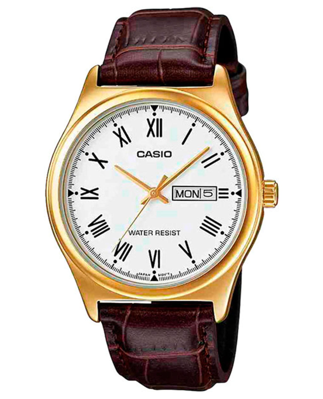 Японские мужские кварцевые часы с минеральным стекломМинеральное стеклоМинеральное стекло представляет собой искусственно выращенный минерал кварца. Такое стекло отличается особой устойчивостью к повреждениям и царапинам. Уступает по некоторым качествам сапфировому стеклу. Casio Collection Standard MTP-V006GL-7B, кварцевый механизм с высокой точностью. Корпус часов изготовлен из нержавеющей стали с IP-покрытиемIP-покрытиеМетод ионного напыления. Демонстрирует повышенную устойчивость к истиранию, окислению и химическим веществам. Под воздействием высокого давления и температуры около 1500°C молекулы металла надёжно соединяются с частицами корпуса часов.. Окошко даты находится в положении 3 часа. Класс водозащиты: 30 метров, позволит защитить корпус от случайных брызг или капель дождя. Кожаный ремешок на стандартной застёжке.