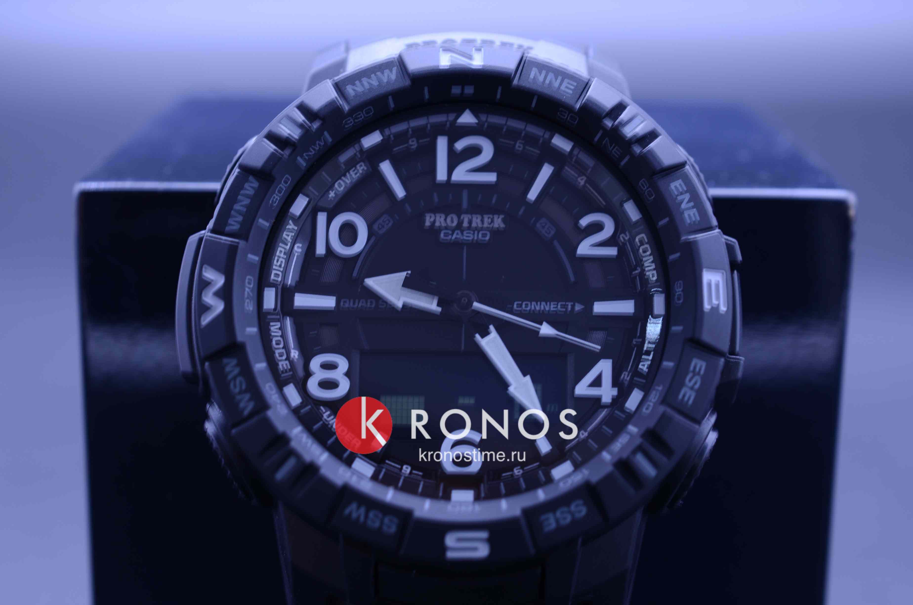 Аксессуар представлен в спортивном стиле, внимание привлекают угловатые детали и крупные габариты. Наручные часы в черной стелс-расцветке оснащены множеством функций, необходимых для активного времяпрепровождения на природе, решения повседневных задач. Это термометр -10°C /+60°C, компас, барометр, график восхода и заката солнца, высотомер, мировое времяМировое время Полезное часовое усложнение, отображающее время в основных городах и известных областях по всему миру, оно связано с часовыми поясами, удобно для путешественников и бизнесменов. , шагомер, хронографХронографФункция позволяет измерять отрезки времени с особой точностью: часы, минуты, секунды. Верным признаком хронографа является наличие на циферблате 3 дополнительных окошек-счётчиков., будильник, календарь. Японский кварцевый механизм с точностью хода -/+15 секунд в месяц получает питание от батарейки, рассчитанной на 2-летний срок службы. Ударопрочный корпусУдаропрочный корпусМеханизм заключён в корпус, выполненный из современных материалов, устойчивых к ударам, механическим повреждениям и падению с высоты: инновационный пластик, карбон, нержавеющая сталь, титан. сделан из полимера, идеальным дополнением к нему стал титановый браслет с IP-покрытиемIP-покрытиеМетод ионного напыления. Демонстрирует повышенную устойчивость к истиранию, окислению и химическим веществам. Под воздействием высокого давления и температуры около 1500°C молекулы металла надёжно соединяются с частицами корпуса часов.. Электролюминесцентная подсветкаЭлектролюминесцентная подсветкаЭлектролюминесцентная панель устанавливается под ЖК-экраном часов, при нажатии кнопки электричество преобразуется в свет за счёт подачи напряжения на атомы фосфора, такой тип подсветки позволяет освещать весь циферблат. освещает дисплей, светодиодСветодиодная подсветкаСветодиодная или LED-подсветка обеспечивает появление яркого холодного свечения за счёт LED-элементов - маленьких лампочек. Они потребляют минимальное количество энергии, чаще всего можно встретить 1 светодиод, в нижней части циферблата. применяется для циферблата. Минеральное стекло защищает циферблат от повреждений, отличается устойчивостью к царапинам. Класс водостойкости – WR 100, часы подходят для плавания. Габариты: 57,5 x 50,8 x 15,8 мм.