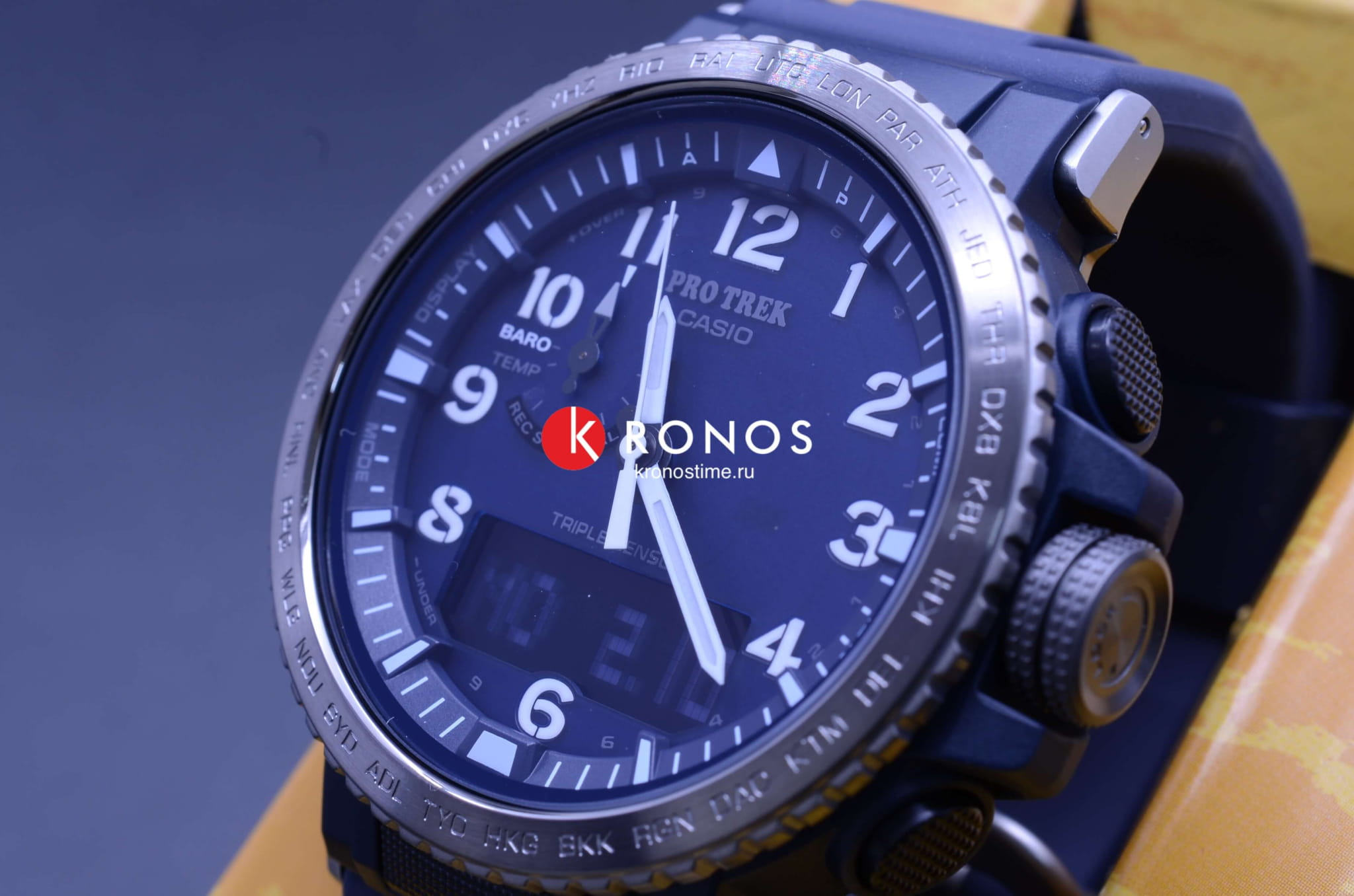 Ударопрочный корпусУдаропрочный корпусМеханизм заключён в корпус, выполненный из современных материалов, устойчивых к ударам, механическим повреждениям и падению с высоты: инновационный пластик, карбон, нержавеющая сталь, титан. из пластика надёжно защищает японский кварцевый механизм и внутреннюю «начинку», объединяющую полезные функции. Это барометр, компас, таймер, хронографХронографФункция позволяет измерять отрезки времени с особой точностью: часы, минуты, секунды. Верным признаком хронографа является наличие на циферблате 3 дополнительных окошек-счётчиков., термометр -10°C /+60°C, высотомер с графиком набора высоты, секундомер, мировое времяМировое время Полезное часовое усложнение, отображающее время в основных городах и известных областях по всему миру, оно связано с часовыми поясами, удобно для путешественников и бизнесменов. – 29 часовых поясов, 5 будильников, автоматический календарь, коррекция времени с помощью радиосигнала. Солнечная батарея повышенной мощности. Стальной безельБезельВнешний ободок, закрепляющий стекло. В спортивных часах так называется поворотное кольцо с делениями на циферблате, выполняет роль таймера – замеряет отрезки времени на шкале. Неподвижный безель – элемент декора. Однонаправленно вращающийся безель на дайверских часах позволяет фиксировать моменты погружения и выныривания на поверхность. c IP-покрытиемIP-покрытиеМетод ионного напыления. Демонстрирует повышенную устойчивость к истиранию, окислению и химическим веществам. Под воздействием высокого давления и температуры около 1500°C молекулы металла надёжно соединяются с частицами корпуса часов.. Закаленное минеральное стекло. Защищённая заводная головка. Класс водозащиты WR 100. Двойная светодиодная подсветкаСветодиодная подсветкаСветодиодная или LED-подсветка обеспечивает появление яркого холодного свечения за счёт LED-элементов - маленьких лампочек. Они потребляют минимальное количество энергии, чаще всего можно встретить 1 светодиод, в нижней части циферблата. дисплея и циферблата. Люминесцентная подсветка NeobriteПодсветка NeobriteИспользование светонакопительных составов на основе сульфида цинка или алюмината стронция, яркий свет можно наблюдать на протяжении 6-10 часов после «зарядки» часов около источника света. для стрелок. В комплектацию включены 2 ремешка, полимерный и текстильный. Габариты: 50,5 x 47,2 x 13,3 мм.