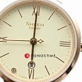 Коричневый ремешок из натуральной кожи стильно смотрится на запястье, брендовый аксессуар идеально сочетается как с повседневными джинсами, так и с вечерним платьем. Кварцевый механизм обеспечивает безупречную точность хода. Прочный корпус с IP-покрытиемIP-покрытиеМетод ионного напыления. Демонстрирует повышенную устойчивость к истиранию, окислению и химическим веществам. Под воздействием высокого давления и температуры около 1500°C молекулы металла надёжно соединяются с частицами корпуса часов. розового золота. Минеральное стекло. Апертура даты. Габариты:34.5×28×6.4mm.