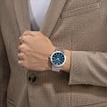 Модель выполнена из высококачественной нержавеющей стали диаметром 42 мм, что гарантирует прочность и долговечность изделия. Минеральное стеклоМинеральное стеклоМинеральное стекло представляет собой искусственно выращенный минерал кварца. Такое стекло отличается особой устойчивостью к повреждениям и царапинам. Уступает по некоторым качествам сапфировому стеклу. надёжно защищает циферблат от повреждений, а браслет из нержавеющей стали обеспечивает комфортное ношение часов. Окошко даты, расположенное в положении 3 часа, добавляет часам изысканности и утончённости.