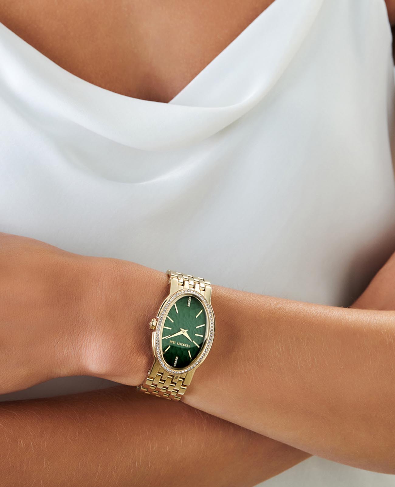Французские женские часы с кристаллами Cerruti 1881 Norcia CIWLG0008804, кварцевый механизм с высокой точностью. Минеральное стеклоМинеральное стеклоМинеральное стекло представляет собой искусственно выращенный минерал кварца. Такое стекло отличается особой устойчивостью к повреждениям и царапинам. Уступает по некоторым качествам сапфировому стеклу. устойчивое к мелким механическим повреждениям. Корпус часов изготовлен из стали с IP-покрытиемIP-покрытиеМетод ионного напыления. Демонстрирует повышенную устойчивость к истиранию, окислению и химическим веществам. Под воздействием высокого давления и температуры около 1500°C молекулы металла надёжно соединяются с частицами корпуса часов.. БезельБезельВнешний ободок, закрепляющий стекло. В спортивных часах так называется поворотное кольцо с делениями на циферблате, выполняет роль таймера – замеряет отрезки времени на шкале. Неподвижный безель – элемент декора. Однонаправленно вращающийся безель на дайверских часах позволяет фиксировать моменты погружения и выныривания на поверхность. и циферблат украшены кристаллами. Класс водозащиты: 30 метров, позволит защитить корпус от случайных брызг или капель дождя. Стальной браслет с IP-покрытиемIP-покрытиеМетод ионного напыления. Демонстрирует повышенную устойчивость к истиранию, окислению и химическим веществам. Под воздействием высокого давления и температуры около 1500°C молекулы металла надёжно соединяются с частицами корпуса часов. на застёжке-бабочке с кнопкамиЗастёжка "бабочка"Такой вид застёжки дополняется предохранителями, помогающими избежать случайного раскрытия браслета. Обладают изящным исполнением. .