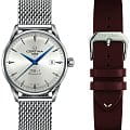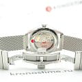 Белый циферблат с узором «солнечные лучи» дополнен яркими стрелками синего цвета, что позволяет без проблем считывать показатели. Оригинальная модель со стальным браслетом миланского плетения в комплекте имеет дополнительный ремешок, позволяющий быстро создать новый образ. Двойная система защиты Double Security обеспечивает высокую удароустойчивость и водонепроницаемость 100 метров. Надёжный автоматический калибр ETA Powermatic 80Powermatic 80Эксклюзивный калибр от швейцарской компании ETA с увеличенным запасом хода до 80 часов за счёт удлинённой заводной пружины. Характеризуется улучшенной системой спуска со сниженным трением. с запасом хода 80 часов. Прозрачная задняя крышка. Стекло из сапфира с односторонним антибликовым покрытием. Апертура даты. Диаметр корпуса: 40 мм.