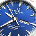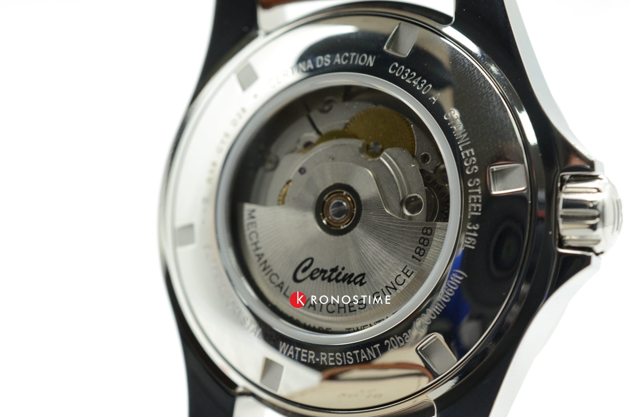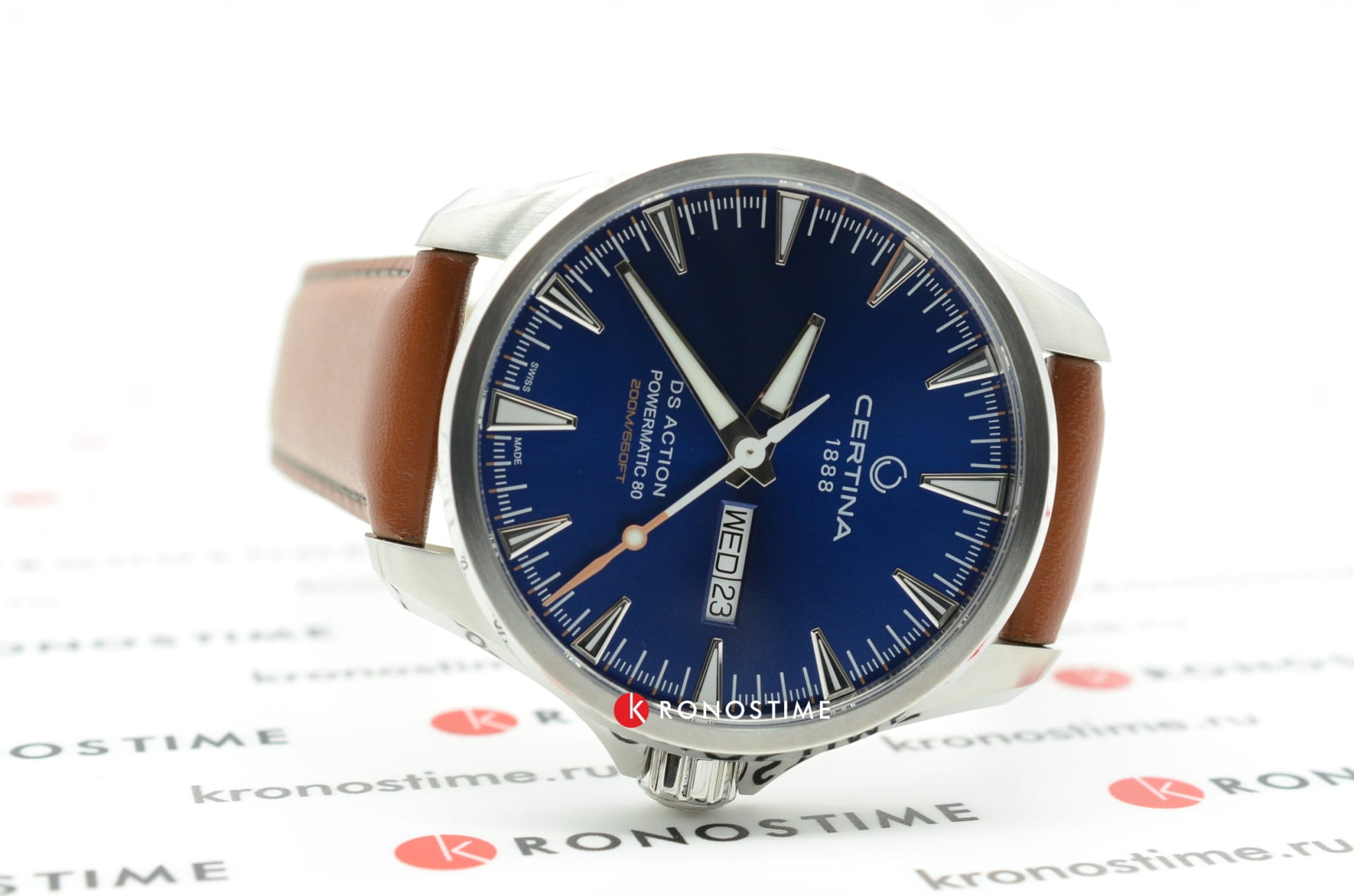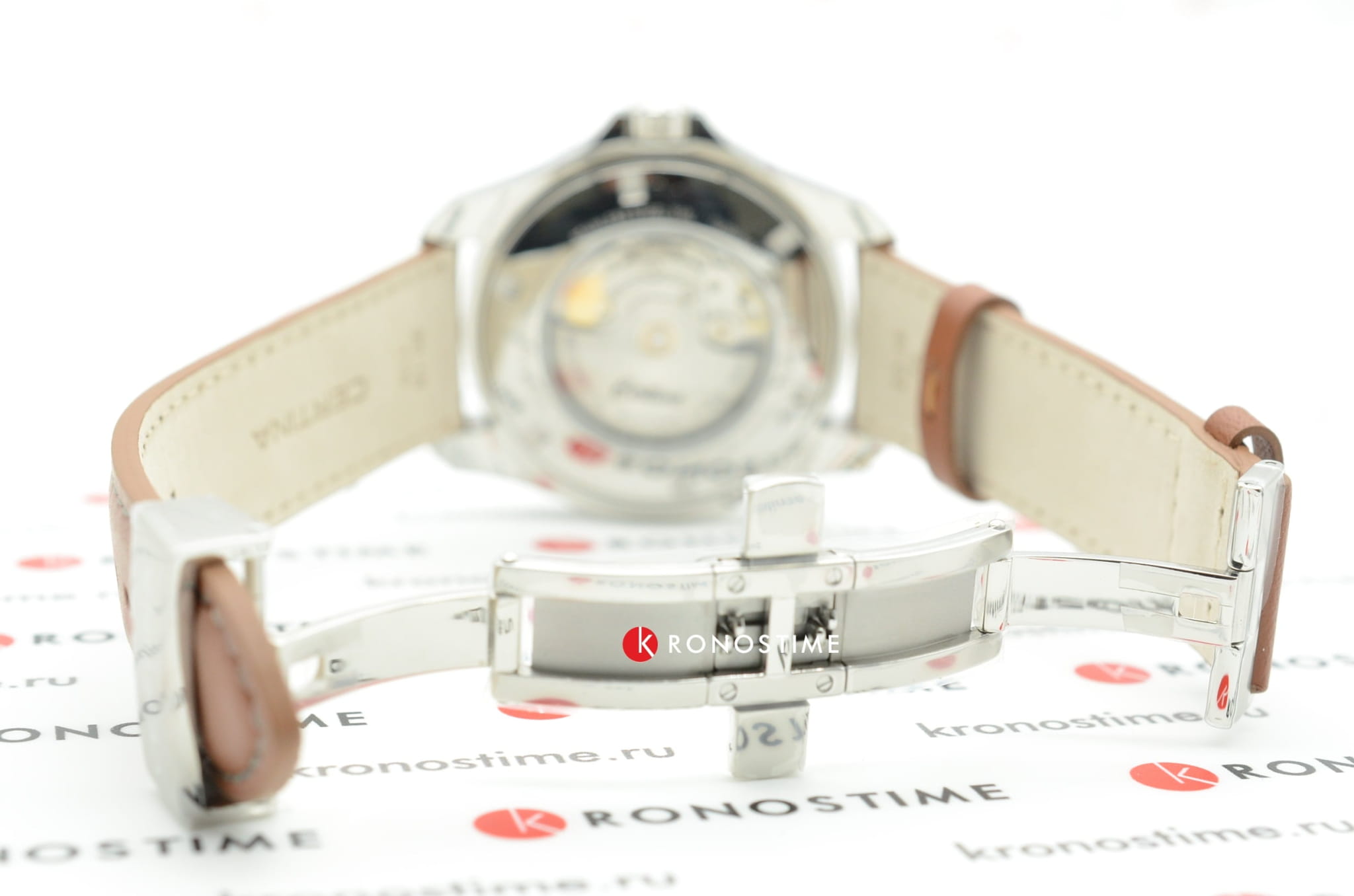 Это элегантная классика, которая безупречно дополнит повседневный, вечерний образ, поможет в создании делового имиджа. Ремешок из натуральной телячьей кожи сочетается с любой одеждой. Стальной ударопрочный корпусУдаропрочный корпусМеханизм заключён в корпус, выполненный из современных материалов, устойчивых к ударам, механическим повреждениям и падению с высоты: инновационный пластик, карбон, нержавеющая сталь, титан. защищает автоматический механизм ETA Powermatic 80Powermatic 80Эксклюзивный калибр от швейцарской компании ETA с увеличенным запасом хода до 80 часов за счёт удлинённой заводной пружины. Характеризуется улучшенной системой спуска со сниженным трением. производства Швейцарии, отличающийся резервом хода на 80 часов. Его работа отлично просматривается благодаря прозрачной задней крышке. Стекло из сапфира. Концепция DS ConceptDS ConceptDouble Security Concept, обозначает двойную надёжность и безупречную точность часов Certina. Двойная система защиты подразумевает обеспечение максимальной устойчивости к ударам и высоких показателей водонепроницаемости.. Водозащита WR 200. ЛюминесцентныеЛюминесцентное покрытиеПозволяет считывать показания времени в темноте. Производители наносят на стрелки, часовые индексы, безель или поверхность циферблата светонакопительный состав, дающий холодное свечение. стрелки и метки. Защита заводной головки. . Апертура даты и дня недели. Диаметр корпуса: 41 мм.