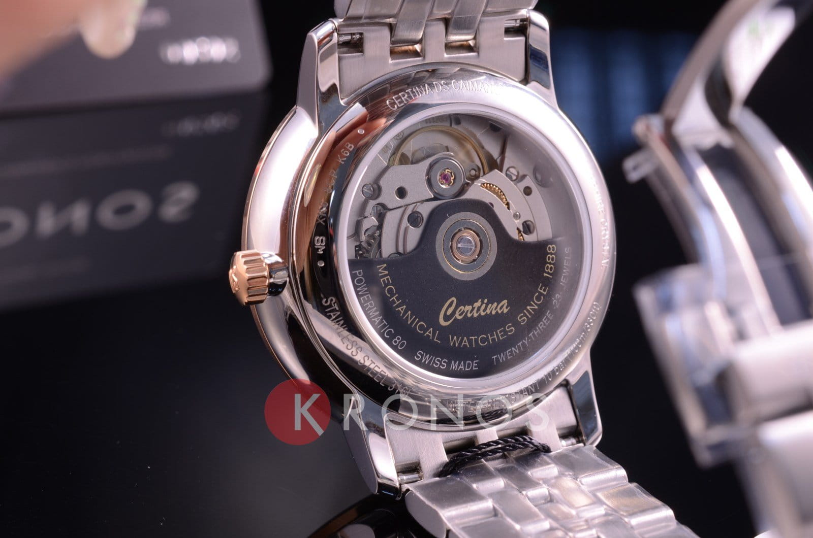 Минималистичный циферблат выдержан в строгом и сдержанном стиле. Привлекательно смотрится стальной браслет с рядами звеньев различного размера. Часы с автоматической системой завода оснащены пружинным калибром ETA Powermatic 80Powermatic 80Эксклюзивный калибр от швейцарской компании ETA с увеличенным запасом хода до 80 часов за счёт удлинённой заводной пружины. Характеризуется улучшенной системой спуска со сниженным трением., имеющим с 80-часовой запас хода. Прозрачная задняя крышка. Надёжный корпус из антикоррозионной стали 316L. Розово-золотистое PVD-покрытиеPVDУльтратонкое покрытие наносится в технике вакуумного напыления, сочетает в себе нитрид титана особой прочности со слоем золота или оксида хрома. Несёт в себе декоративную или защитную функцию.. Концепция DS ConceptDS ConceptDouble Security Concept, обозначает двойную надёжность и безупречную точность часов Certina. Двойная система защиты подразумевает обеспечение максимальной устойчивости к ударам и высоких показателей водонепроницаемости.. Сапфировое стекло. Водонепроницаемость 10 бар. . Апертура даты. Диаметр корпуса: 39 мм.