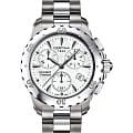 Брендовый хронографХронографФункция позволяет измерять отрезки времени с особой точностью: часы, минуты, секунды. Верным признаком хронографа является наличие на циферблате 3 дополнительных окошек-счётчиков. показывает время с высокой точностью хода за счёт швейцарского кварцевого механизма ETA 251.471. Сапфировое стекло защищает циферблат с лаконичным узором. Стильно смотрится серебристый титановый браслет. Модель сохраняет водостойкость до 100 метров. Апертура даты.