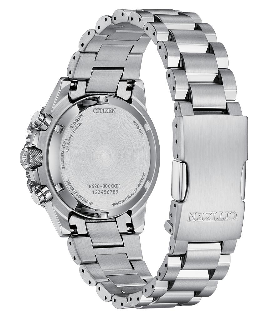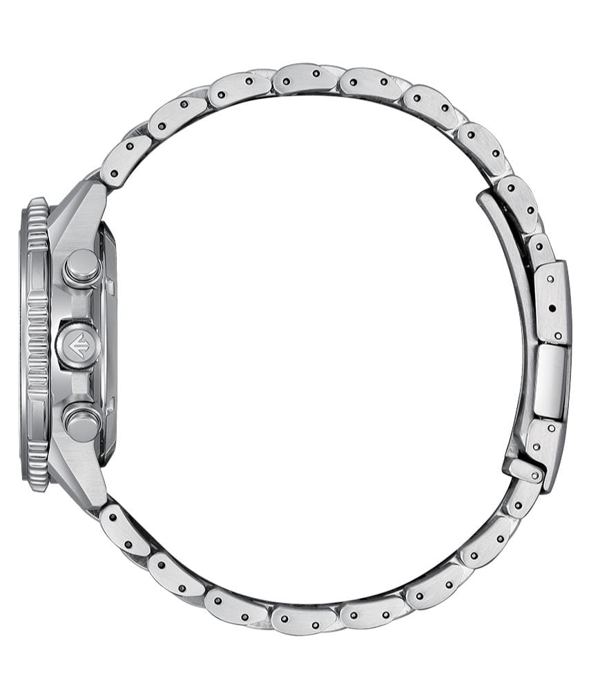 Мужские часы Citizen Promaster CA4660-61A - хронографХронографФункция позволяет измерять отрезки времени с особой точностью: часы, минуты, секунды. Верным признаком хронографа является наличие на циферблате 3 дополнительных окошек-счётчиков. с секундомеромСекундомерСекундоме́р — прибор, способный измерять интервалы времени с точностью до долей секунды. спортивного дизайна с высоким уровнем водозащиты. Корпус из нержавеющей стали диаметром 40 мм идеально сбалансирован. Сапфировое стеклоСапфировое стеклоПрочный и надёжный материал из кристалла сапфира синтетического происхождения, характеризующийся особой твёрдостью и устойчивостью к царапинам и повреждениям. обеспечивает отличную защиту циферблата от царапин. Часы работают на основе кварцевого механизма, функция Eco-Drive (питание от солнечной энергии, запас энергии на 6 месяцев). Стальной браслет на раскладной застёжкеРаскладная застёжкаТакой тип застёжки используется только на браслетах из металла. Она никогда не раскрывается полностью, происходит разделение на 2 и более частей. Раскладывающая застёжка снизит вероятность потери часов к минимуму. идеально дополняют дизайн часов, обеспечивая комфортное ношение. Стрелки и метки на циферблате имеют люминесцентное покрытиеЛюминесцентное покрытиеПозволяет считывать показания времени в темноте. Производители наносят на стрелки, часовые индексы, безель или поверхность циферблата светонакопительный состав, дающий холодное свечение. позволяющее легко определять время даже в темноте. Функция индикации заряда (EOL) и предотвращения перезарядки. Окошко даты находится в положении между 4 и 5 часов. 12/24х часовой формат времени. Часы обладают впечатляющей водонепроницаемостью до 200WR, что делает их идеальными для плавания, ныряния и погружений с аквалангом.