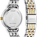 Часы Citizen EL3106-59D представляют собой элегантную модель, выполненную в Японии, сочетающую в себе современные технологии и утончённый дизайн. Корпус  изготовлен из прочной нержавеющей стали, что обеспечивает долговечность и привлекательный внешний вид. Диаметр корпуса составляет 31 мм, а толщина — всего 7 мм, что делает часы изящными и аккуратными на запястье. Особое внимание привлекает безельБезельВнешний ободок, закрепляющий стекло. В спортивных часах так называется поворотное кольцо с делениями на циферблате, выполняет роль таймера – замеряет отрезки времени на шкале. Неподвижный безель – элемент декора. Однонаправленно вращающийся безель на дайверских часах позволяет фиксировать моменты погружения и выныривания на поверхность., украшенный мерцающими кристаллами, которые придают часам особый шарм и изысканность. Надёжный кварцевый механизм гарантирует точность хода, а водозащита уровня WR 50 позволяет не снимать часы при мытье рук или во время дождя. Перламутровый циферблат украшен часовыми индексами в виде точек и цифр, а также оснащён центральными стрелками часов, минут и секунд для удобного считывания времени и кристаллами. Минеральное стеклоМинеральное стеклоМинеральное стекло представляет собой искусственно выращенный минерал кварца. Такое стекло отличается особой устойчивостью к повреждениям и царапинам. Уступает по некоторым качествам сапфировому стеклу. устойчиво к появлению мелких царапин, сохраняя прозрачность и презентабельный вид.  Стальной браслет с частичным золотистым IP-покрытиемIP-покрытиеМетод ионного напыления. Демонстрирует повышенную устойчивость к истиранию, окислению и химическим веществам. Под воздействием высокого давления и температуры около 1500°C молекулы металла надёжно соединяются с частицами корпуса часов. и раскладной застёжкойРаскладная застёжкаТакой тип застёжки используется только на браслетах из металла. Она никогда не раскрывается полностью, происходит разделение на 2 и более частей. Раскладывающая застёжка снизит вероятность потери часов к минимуму. надежно фиксирует часы на запястье, обеспечивая комфорт при ежедневном ношении.