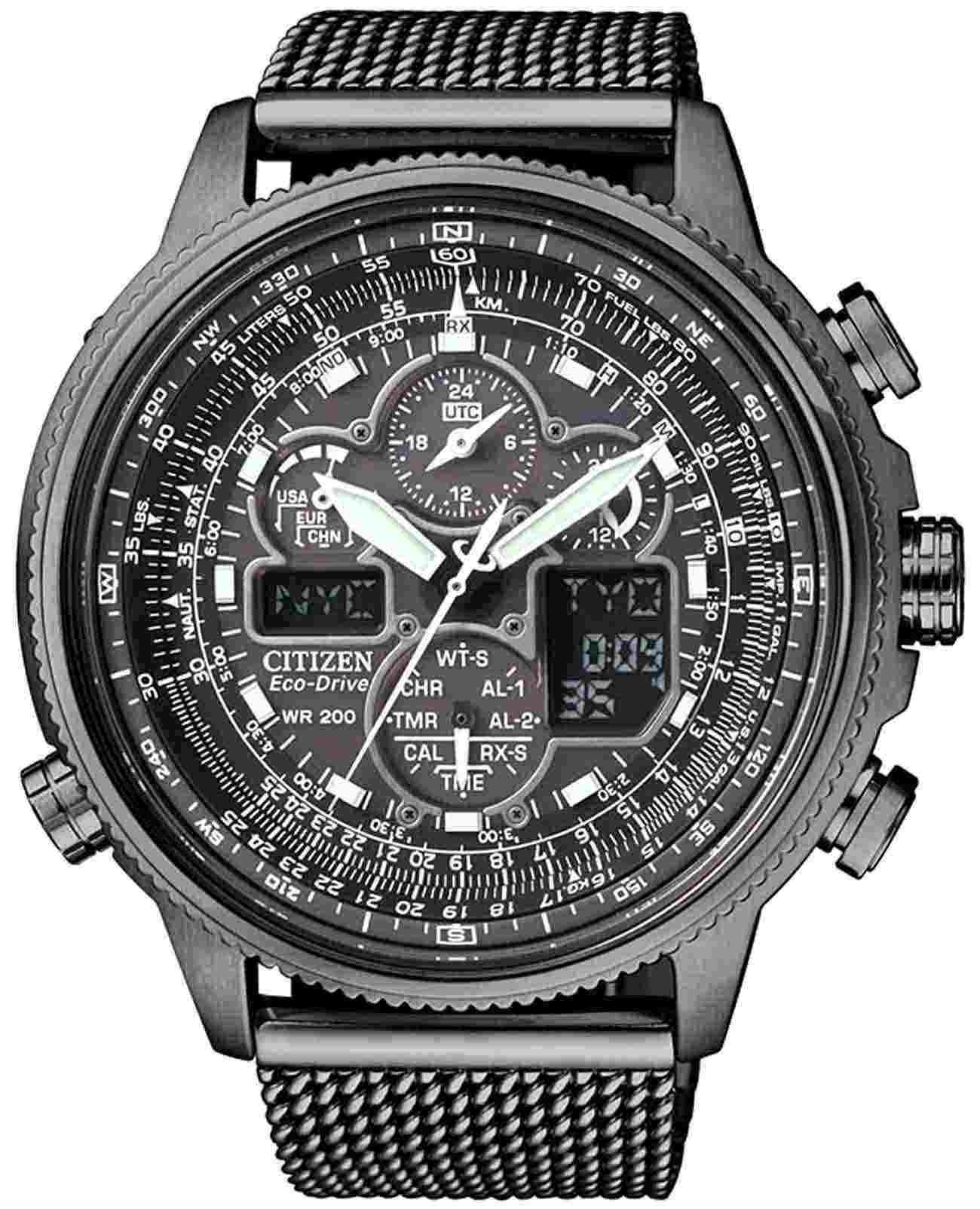 Citizen Promaster JY8037-50E часы-хронографХронографФункция позволяет измерять отрезки времени с особой точностью: часы, минуты, секунды. Верным признаком хронографа является наличие на циферблате 3 дополнительных окошек-счётчиков. с секундомеромСекундомерСекундоме́р — прибор, способный измерять интервалы времени с точностью до долей секунды. спортивного дизайна с высоким уровнем водозащиты. Корпус из нержавеющей стали с IP-покрытиемIP-покрытиеМетод ионного напыления. Демонстрирует повышенную устойчивость к истиранию, окислению и химическим веществам. Под воздействием высокого давления и температуры около 1500°C молекулы металла надёжно соединяются с частицами корпуса часов. диаметром 47,1 мм идеально сбалансирован. Минеральное стеклоМинеральное стеклоМинеральное стекло представляет собой искусственно выращенный минерал кварца. Такое стекло отличается особой устойчивостью к повреждениям и царапинам. Уступает по некоторым качествам сапфировому стеклу. обеспечивает отличную защиту циферблата от царапин. Часы работают на основе кварцевого механизма, питание от солнечной энергии. Стальной браслет миланского плетения на застёжке-бабочке с кнопкамиЗастёжка "бабочка"Такой вид застёжки дополняется предохранителями, помогающими избежать случайного раскрытия браслета. Обладают изящным исполнением. идеально дополняют дизайн часов, обеспечивая комфортное ношение. Стрелки и метки на циферблате имеют люминесцентное покрытиеЛюминесцентное покрытиеПозволяет считывать показания времени в темноте. Производители наносят на стрелки, часовые индексы, безель или поверхность циферблата светонакопительный состав, дающий холодное свечение. позволяющее легко определять время даже в темноте. Поворотный безельБезельВнешний ободок, закрепляющий стекло. В спортивных часах так называется поворотное кольцо с делениями на циферблате, выполняет роль таймера – замеряет отрезки времени на шкале. Неподвижный безель – элемент декора. Однонаправленно вращающийся безель на дайверских часах позволяет фиксировать моменты погружения и выныривания на поверхность.. Автоматический прием сигналов от радиовышек, расположенных в различных точках земного шара, которые передают временные сигналы от определенных атомных часов. Коррекция текущего времени радиосигналом на территории почти всей Европы, США, Японии и Китая. Функция индикации заряда (EOL) и предотвращения перезарядки. Мировое времяМировое время Полезное часовое усложнение, отображающее время в основных городах и известных областях по всему миру, оно связано с часовыми поясами, удобно для путешественников и бизнесменов. - 43 города (29 часовых поясов), переход на зимнее и летнее время. ТаймерТаймерОтсчитывает секунды в обратном направлении в заданном интервале времени. обратного отсчета до 99мин. Секундомер с точностью 1сек и временем измерения 1ч. 12-ти и 24-х часовой формат. Логарифмическая линейка. Часы обладают впечатляющей водонепроницаемостью до 200WR, что делает их идеальными для плавания, ныряния и погружений с аквалангом.