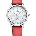 Женские наручные часы Cover CO199.01 из коллекции Cover Pearl Dreams сочетают в себе элегантность и точность швейцарского производства. Модель обладает круглым корпусом диаметром 34 мм, изготовленным из нержавеющей стали с полированным покрытием. Ремешок выполнен из красной кожи, на классической застежке для комфортного ношения. Белый перламутровый циферблат украшен лаконичными индексами, секундная стрелка вынесена на субциферблат. Для защиты используется минеральное стеклоМинеральное стеклоМинеральное стекло представляет собой искусственно выращенный минерал кварца. Такое стекло отличается особой устойчивостью к повреждениям и царапинам. Уступает по некоторым качествам сапфировому стеклу. с сапфировым покрытием, обеспечивающее ударопрочность и превосходную читаемость времени. Часы работают на высокоточном кварцевом механизме, гарантирующем исключительную точность хода без необходимости подзаводки. Водонепроницаемость часов достигает 5 атмосфер (WR 50), что позволяет использовать их в повседневной жизни, однако не рекомендуется для контакта с водой во время плавания или дайвинга. Эти швейцарские часы станут идеальным дополнением как классического, так и повседневного образа женщины, ценящей элегантность и качество.