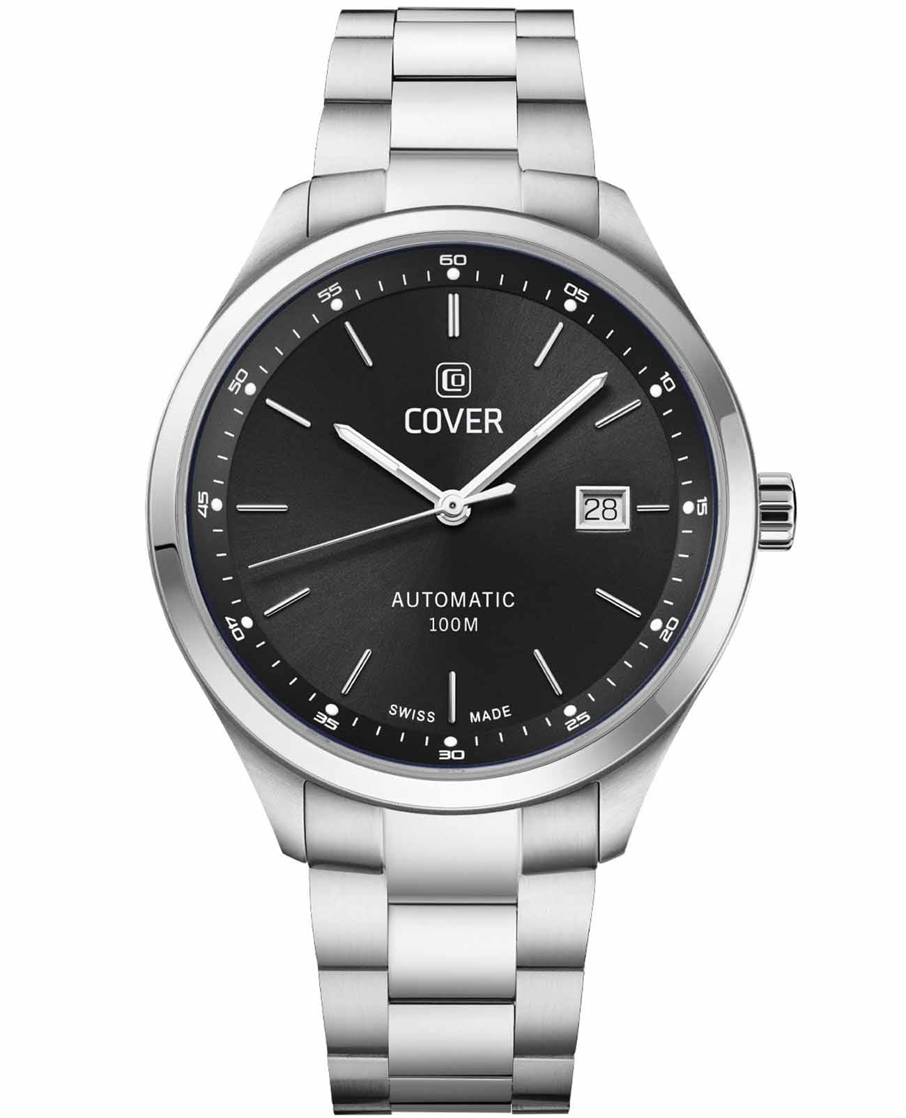 Часы COVER Arena Automatic COA225.01 представляют собой идеальное сочетание элегантности и надежности в мире швейцарских автоматических часов. Эти часы выделяются смелым дизайном, который подчеркивается корпусом из нержавеющей стали диаметром 42 мм и черным циферблатом с светящимися стрелками и метками благодаря люминесцентному покрытиюЛюминесцентное покрытиеПозволяет считывать показания времени в темноте. Производители наносят на стрелки, часовые индексы, безель или поверхность циферблата светонакопительный состав, дающий холодное свечение.. Окошко даты, расположенное на отметке «3 часа», поможет вам всегда оставаться в курсе текущих дел. Все это защищено устойчивым к царапинам сапфировым стекломСапфировое стеклоПрочный и надёжный материал из кристалла сапфира синтетического происхождения, характеризующийся особой твёрдостью и устойчивостью к царапинам и повреждениям.. Браслет, выполненный из полированной и матовой нержавеющей стали с раскладной застёжкойРаскладная застёжкаТакой тип застёжки используется только на браслетах из металла. Она никогда не раскрывается полностью, происходит разделение на 2 и более частей. Раскладывающая застёжка снизит вероятность потери часов к минимуму., придает часам утонченность и долговечность. Часы оснащены швейцарским автоматическим механизмом и водостойкостью до 10 ATM, что делает их надежными в любых условиях. Эти часы станут отличным выбором для тех, кто ценит швейцарское мастерство и стильный дизайн.