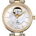 Часы COVER COA9.02 из коллекции Concerta Open Heart – элегантная модель швейцарского производства. Корпус и браслет выполнены из нержавеющей стали с PVDPVDУльтратонкое покрытие наносится в технике вакуумного напыления, сочетает в себе нитрид титана особой прочности со слоем золота или оксида хрома. Несёт в себе декоративную или защитную функцию. покрытием золотого цвета. Центральная область циферблата – белый перламутр, периферийная – круговое гильоше. Тонкий безельБезельВнешний ободок, закрепляющий стекло. В спортивных часах так называется поворотное кольцо с делениями на циферблате, выполняет роль таймера – замеряет отрезки времени на шкале. Неподвижный безель – элемент декора. Однонаправленно вращающийся безель на дайверских часах позволяет фиксировать моменты погружения и выныривания на поверхность. инкрустированный кристаллами Swarovski подчеркивает изысканный стиль. Сапфировое стеклоСапфировое стеклоПрочный и надёжный материал из кристалла сапфира синтетического происхождения, характеризующийся особой твёрдостью и устойчивостью к царапинам и повреждениям. защищает поверхность от повреждений. Водозащита 100 метров делает часы практичными для повседневного использования. Диаметр корпуса – 35 мм. Застёжка бабочкаЗастёжка "бабочка"Такой вид застёжки дополняется предохранителями, помогающими избежать случайного раскрытия браслета. Обладают изящным исполнением. обеспечивает надежную фиксацию и удобство в носке.