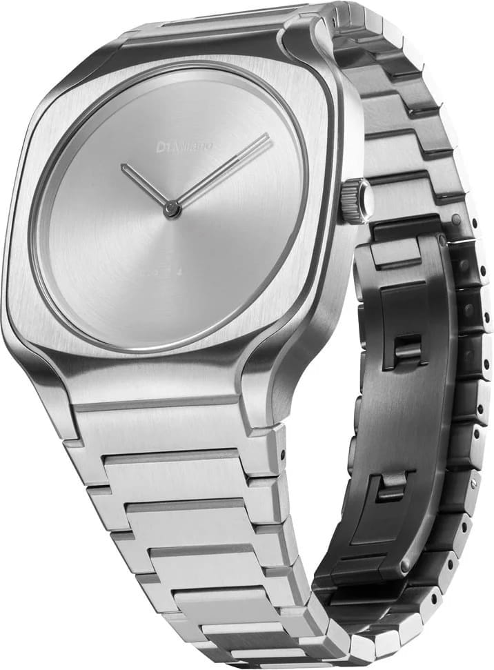 Часы D1 Milano Square Grey Frame SQBJ10 — это уникальные кварцевые часы, которые подчеркнут ваш изысканный стиль. Эти наручные часы с эффектным монохромным дизайном станут выразительным акцентом вашего образа. Изысканный корпус из стали 316L диаметром 37 мм придает часам современный и утонченный вид. Серебристый циферблат, выполненный по технологии Sunray, а серебристые хроматические стрелки и индексы создают стильный контраст, подчёркивая элегантность модели. Задняя крышка из нержавеющей стали закреплена на 4-х винтах. Стальной браслет с застёжкой «бабочка»Застёжка "бабочка"Такой вид застёжки дополняется предохранителями, помогающими избежать случайного раскрытия браслета. Обладают изящным исполнением. обеспечивает надежность и комфорт в повседневном использовании. Сапфировое стеклоСапфировое стеклоПрочный и надёжный материал из кристалла сапфира синтетического происхождения, характеризующийся особой твёрдостью и устойчивостью к царапинам и повреждениям. с антибликовым покрытиемАнтибликовое покрытиеСлой оксида металла в 0,13-0,3 микрон, благодаря которому стекло часов не бликует и не отражает свет. Антибликовое покрытие уменьшает отражение света в 10 раз, обеспечивая отличную читаемость показателей циферблата. защищает циферблат, а водозащита до 50WR делает эти часы практичным выбором для любых условий. Благодаря калибру Miyota 1L22, часы отличается точностью и надежностью. Эти итальянские часы представляют собой идеальное сочетание традиционного мастерства и инновационного подхода, воплощая в себе новый взгляд на классическую элегантность.