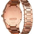Наручные часы D1 Milano UTBU02 из коллекции Ultra Thin Skeleton сочетают в себе элегантный дизайн и современные технологии. Модель обладает круглым корпусом диаметром 38 мм, изготовленным из нержавеющей стали с PVD-покрытиемPVDУльтратонкое покрытие наносится в технике вакуумного напыления, сочетает в себе нитрид титана особой прочности со слоем золота или оксида хрома. Несёт в себе декоративную или защитную функцию. золотого цвета, что обеспечивает высокую устойчивость к внешним воздействиям. Для защиты циферблата используется сапфировое стеклоСапфировое стеклоПрочный и надёжный материал из кристалла сапфира синтетического происхождения, характеризующийся особой твёрдостью и устойчивостью к царапинам и повреждениям., которое эффективно противостоит царапинам и механическим повреждениям. Водонепроницаемость модели достигает 5 атмосфер (50 метров), что позволяет использовать их при контакте с водой, например, во время мытья рук или дождя. Браслет выполнен из нержавеющей стали с раскладной застежкойРаскладной замокДанный вариант застежки используется только на часах с металлическим браслетом. Отличительная особенность такого крепления в том, что длина браслета становится универсальной и вы можете самостоятельно отрегулировать нужный вам размер – застежка просто двигается по браслету часов., обеспечивающей комфортное ношение и безопасность. Циферблат с метками в виде штрихов придает часам изысканность и делает их идеальным выбором для повседневного использования или особых случаев.