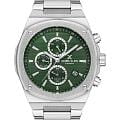 Мужские кварцевые часы Daniel Klein — это модный и лёгкий аксессуар для активного образа жизни. Корпус диаметром 52 мм выполнен из металла с сатинированной отделкой. БезельБезельВнешний ободок, закрепляющий стекло. В спортивных часах так называется поворотное кольцо с делениями на циферблате, выполняет роль таймера – замеряет отрезки времени на шкале. Неподвижный безель – элемент декора. Однонаправленно вращающийся безель на дайверских часах позволяет фиксировать моменты погружения и выныривания на поверхность. украшен стильными винтами. Циферблат зелёного цвета оформлен горизонтальным узором, штрихами и прямоугольными стрелками в стиле Baton. Присутствуют отдельные индикаторы дня недели и второго часового пояса (GMTВторой часовой поясФункция, позволяющая отображать время двух часовых поясов одновременно.), а также 24-часовой формат времени. Окошко даты расположено в положении 4 часов. Стрелки и метки с люминесцентным покрытиемЛюминесцентное покрытиеПозволяет считывать показания времени в темноте. Производители наносят на стрелки, часовые индексы, безель или поверхность циферблата светонакопительный состав, дающий холодное свечение., обеспечивающим хорошую читаемость в темноте. Циферблат защищён минеральным стекломМинеральное стеклоМинеральное стекло представляет собой искусственно выращенный минерал кварца. Такое стекло отличается особой устойчивостью к повреждениям и царапинам. Уступает по некоторым качествам сапфировому стеклу.. Заводная головка рифлёная, с защитой. Часы оснащены стальным браслетом на раскладной застёжкеРаскладная застёжкаТакой тип застёжки используется только на браслетах из металла. Она никогда не раскрывается полностью, происходит разделение на 2 и более частей. Раскладывающая застёжка снизит вероятность потери часов к минимуму.. Водонепроницаемость 50 м позволяет использовать часы в повседневных условиях. Идеальный выбор для тех, кто ценит турецкое качество и современный дизайн.