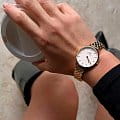 Женские наручные часы с минеральным стекломМинеральное стеклоМинеральное стекло представляет собой искусственно выращенный минерал кварца. Такое стекло отличается особой устойчивостью к повреждениям и царапинам. Уступает по некоторым качествам сапфировому стеклу. Daniel Wellington Petite DW00100616, кварцевый механизм с высокой точностью. Корпус часов изготовлен из стали. Циферблат украшен 12 кристаллами Swarovski. Класс водозащиты: 30 метров, позволит защитить корпус от случайных брызг или капель дождя. Стальной браслет с частичным застёжке-бабочке с кнопкамиЗастёжка "бабочка"Такой вид застёжки дополняется предохранителями, помогающими избежать случайного раскрытия браслета. Обладают изящным исполнением. PVDУльтратонкое покрытие наносится в технике вакуумного напыления, сочетает в себе нитрид титана особой прочности со слоем золота или оксида хрома. Несёт в себе декоративную или защитную функцию.