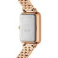 Daniel Wellington Quadro DW00100620 — элегантные женские часы с характерным скандинавским минимализмом. Прямоугольный корпус из нержавеющей стали с PVDPVDУльтратонкое покрытие наносится в технике вакуумного напыления, сочетает в себе нитрид титана особой прочности со слоем золота или оксида хрома. Несёт в себе декоративную или защитную функцию.-покрытием в цвете розового золота подчёркивает утончённость дизайна. Перламутровый циферблат украшен аккуратными метками-камнями, создающими изысканный блеск при каждом движении. Часы надёжно защищены минеральным стекломМинеральное стеклоМинеральное стекло представляет собой искусственно выращенный минерал кварца. Такое стекло отличается особой устойчивостью к повреждениям и царапинам. Уступает по некоторым качествам сапфировому стеклу., стойким к мелким повреждениям. Браслет из нержавеющей стали с утончённым плетением фиксируется с помощью застёжки «бабочка»Застёжка "бабочка"Такой вид застёжки дополняется предохранителями, помогающими избежать случайного раскрытия браслета. Обладают изящным исполнением. , которая обеспечивает комфорт и надёжность при носке. Модель работает на базе точного кварцевого механизма и подойдёт как для повседневных, так и для вечерних образов, подчеркивая индивидуальность своей обладательницы.