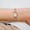 Женские наручные часы с минеральным стекломМинеральное стеклоМинеральное стекло представляет собой искусственно выращенный минерал кварца. Такое стекло отличается особой устойчивостью к повреждениям и царапинам. Уступает по некоторым качествам сапфировому стеклу. Daniel Wellington Quadro DW00100656, кварцевый механизм с высокой точностью. Корпус часов изготовлен из стали с PVD-покрытиемPVDУльтратонкое покрытие наносится в технике вакуумного напыления, сочетает в себе нитрид титана особой прочности со слоем золота или оксида хрома. Несёт в себе декоративную или защитную функцию.. Двухуровневый циферблат выполнен по технологии Sunray (солнечные лучи) и украшен фирменным логотипом Daniel Wellington. Накладные метки в виде штрихов. Рифленая заводная головка. Индивидуальный серийный номер. Класс водозащиты: 30 метров, позволит защитить корпус от случайных брызг или капель дождя. Стальной браслет миланского плетения с PVD-покрытиемPVDУльтратонкое покрытие наносится в технике вакуумного напыления, сочетает в себе нитрид титана особой прочности со слоем золота или оксида хрома. Несёт в себе декоративную или защитную функцию. на раскладном замкеРаскладной замокДанный вариант застежки используется только на часах с металлическим браслетом. Отличительная особенность такого крепления в том, что длина браслета становится универсальной и вы можете самостоятельно отрегулировать нужный вам размер – застежка просто двигается по браслету часов..