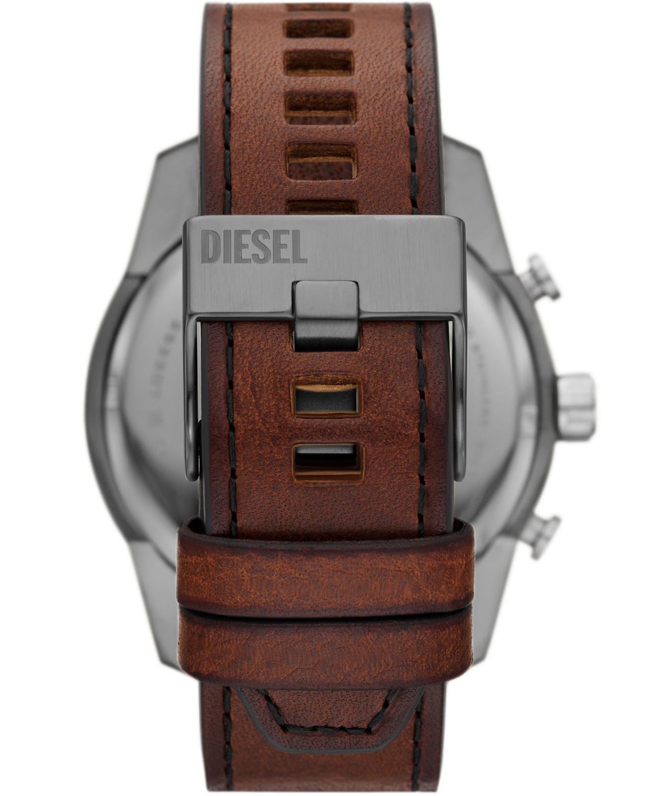 Мужские наручные часы-хронографХронографФункция позволяет измерять отрезки времени с особой точностью: часы, минуты, секунды. Верным признаком хронографа является наличие на циферблате 3 дополнительных окошек-счётчиков. с секундомеромСекундомерСекундоме́р — прибор, способный измерять интервалы времени с точностью до долей секунды. Diesel Split DZ4643, кварцевый механизм с высокой точностью. Класс водозащиты: 50 метров, позволит защитить корпус от случайных брызг или капель дождя. Корпус часов изготовлен из нержавеющей стали с IP-покрытиемIP-покрытиеМетод ионного напыления. Демонстрирует повышенную устойчивость к истиранию, окислению и химическим веществам. Под воздействием высокого давления и температуры около 1500°C молекулы металла надёжно соединяются с частицами корпуса часов.. Кожаный ремешок на стандартной застёжке. 12-ти и 24-х часовой формат времени. Циферблат выполнен по технологии Sunray (солнечные лучи). Метки в виде штрихов. Стрелки и метки с люминесцентным покрытиемЛюминесцентное покрытиеПозволяет считывать показания времени в темноте. Производители наносят на стрелки, часовые индексы, безель или поверхность циферблата светонакопительный состав, дающий холодное свечение..