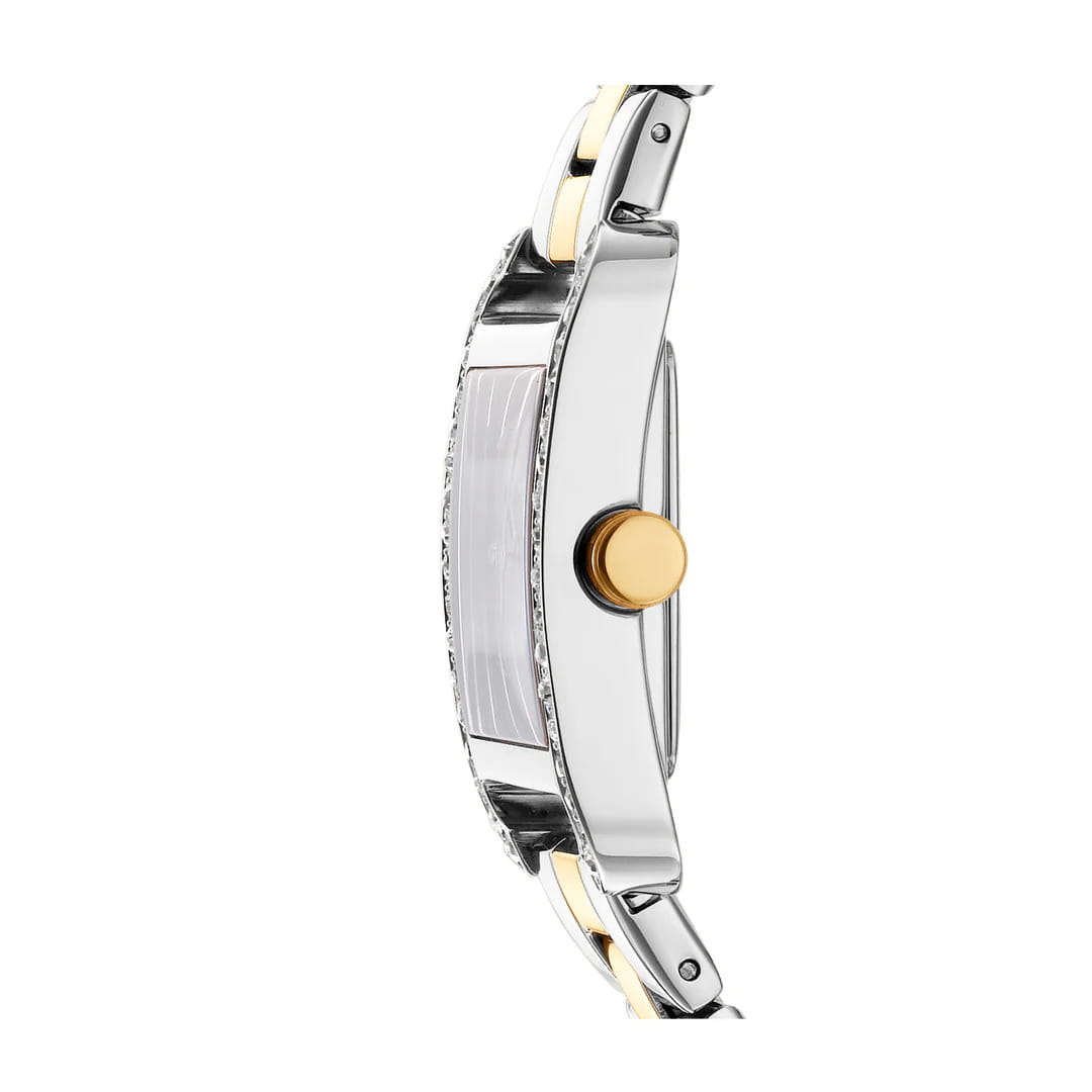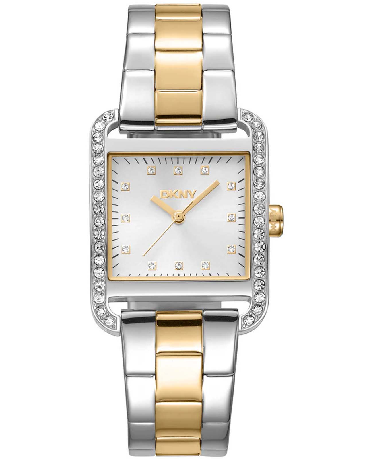 DKNY City Glitz DK1L003M0045 — женские кварцевые часы, сочетающие городской шик и нотки гламура. Корпус из нержавеющей стали 35 мм и минеральное стеклоМинеральное стеклоМинеральное стекло представляет собой искусственно выращенный минерал кварца. Такое стекло отличается особой устойчивостью к повреждениям и царапинам. Уступает по некоторым качествам сапфировому стеклу. обеспечивает защиту от царапин, а водонепроницаемость до 30 метров делает модель практичной для активного отдыха или повседневной носки. Стальной браслет с IP покрытиемIP-покрытиеМетод ионного напыления. Демонстрирует повышенную устойчивость к истиранию, окислению и химическим веществам. Под воздействием высокого давления и температуры около 1500°C молекулы металла надёжно соединяются с частицами корпуса часов. на раскладной застёжкеРаскладная застёжкаТакой тип застёжки используется только на браслетах из металла. Она никогда не раскрывается полностью, происходит разделение на 2 и более частей. Раскладывающая застёжка снизит вероятность потери часов к минимуму. гарантирует комфорт и надежность. БезельБезельВнешний ободок, закрепляющий стекло. В спортивных часах так называется поворотное кольцо с делениями на циферблате, выполняет роль таймера – замеряет отрезки времени на шкале. Неподвижный безель – элемент декора. Однонаправленно вращающийся безель на дайверских часах позволяет фиксировать моменты погружения и выныривания на поверхность. инкрустирован кристаллами. Идеальный аксессуар для тех, кто ценит смелый урбанистический стиль с акцентами роскоши, подчеркивающий индивидуальность в будни и праздники.