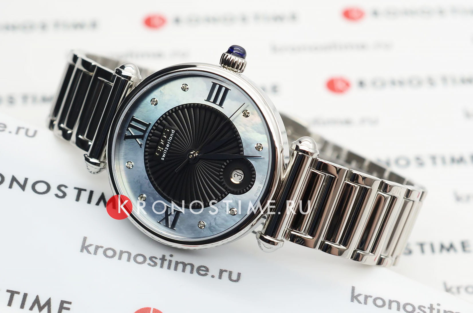 Женские швейцарские наручные часы с кварцевым механизмом с высокой точностью. Сапфировое стеклоСапфировое стеклоПрочный и надёжный материал из кристалла сапфира синтетического происхождения, характеризующийся особой твёрдостью и устойчивостью к царапинам и повреждениям. устойчивое к появлению царапин, обладающее высокой прозрачностью. Класс водозащиты: 30 метров, позволит защитить корпус от случайных брызг или капель дождя. Корпус часов изготовлен из стали. Кожаный ремешок с застёжкой «бабочка» с кнопкамиЗастёжка "бабочка"Такой вид застёжки дополняется предохранителями, помогающими избежать случайного раскрытия браслета. Обладают изящным исполнением. .