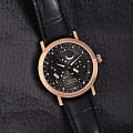 Мужские швейцарские механические часы с автоподзаводом Epos Big Moon 3440.322.24.14.25. Сапфировое стеклоСапфировое стеклоПрочный и надёжный материал из кристалла сапфира синтетического происхождения, характеризующийся особой твёрдостью и устойчивостью к царапинам и повреждениям. устойчивое к появлению царапин, обладающее высокой прозрачностью. Корпус часов изготовлен из нержавеющей стали с PVD-покрытиемPVDУльтратонкое покрытие наносится в технике вакуумного напыления, сочетает в себе нитрид титана особой прочности со слоем золота или оксида хрома. Несёт в себе декоративную или защитную функцию.. Стрелки и метки с люминесцентной подсветкойЛюминесцентное покрытиеПозволяет считывать показания времени в темноте. Производители наносят на стрелки, часовые индексы, безель или поверхность циферблата светонакопительный состав, дающий холодное свечение.. Циферблат с метками в виде точек. Дата отображается центральной стрелкой. Окошки для дня недели и месяца, индикатор фазы Луны. Часовой механизм декорирован жемчужной фактурной шлифовкой (Le Perlage). Прозрачная задняя крышка. Класс водозащиты: 50 метров, позволит защитить корпус от случайных брызг или капель дождя. Кожаный ремешок на стандартной застёжке.