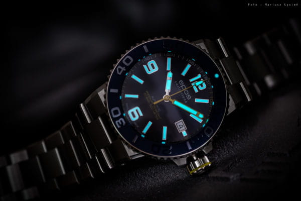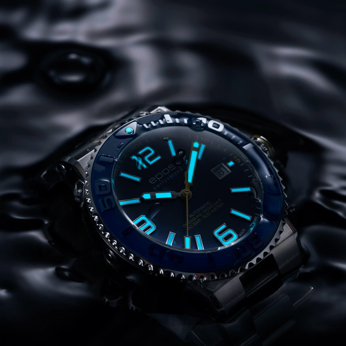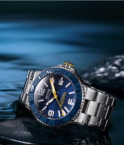Мужские механические часы с автоподзаводом Epos из коллекции Diver — это профессиональный дайверский инструмент с швейцарским качеством. Корпус диаметром 43 мм и толщиной 14 мм выполнен из нержавеющей стали 316L с PVD-покрытиемPVDУльтратонкое покрытие наносится в технике вакуумного напыления, сочетает в себе нитрид титана особой прочности со слоем золота или оксида хрома. Несёт в себе декоративную или защитную функцию.. Циферблат синего цвета с пескоструйной обработкой оформлен аппликациями часовых индексов и крупными цифрами с покрытием. Циферблат защищён сапфировым стекломСапфировое стеклоПрочный и надёжный материал из кристалла сапфира синтетического происхождения, характеризующийся особой твёрдостью и устойчивостью к царапинам и повреждениям.. Стрелки и метки с люминесцентным покрытиемЛюминесцентное покрытиеПозволяет считывать показания времени в темноте. Производители наносят на стрелки, часовые индексы, безель или поверхность циферблата светонакопительный состав, дающий холодное свечение. Super-Luminova, обеспечивающим отличную читаемость в темноте. Механизм — швейцарский калибр ETA 2824. Окошко даты расположено в положении 3 часов. БезельБезельВнешний ободок, закрепляющий стекло. В спортивных часах так называется поворотное кольцо с делениями на циферблате, выполняет роль таймера – замеряет отрезки времени на шкале. Неподвижный безель – элемент декора. Однонаправленно вращающийся безель на дайверских часах позволяет фиксировать моменты погружения и выныривания на поверхность. — однонаправленный вращающийся, с синей керамической накладкой и рельефной шкалой погружений. Завинчивающаяся коронка и задняя крышка обеспечивают повышенную защиту. Часы оснащены стальным браслетом с литыми звеньями в 3 ряда и раскладной застёжкойРаскладная застёжкаТакой тип застёжки используется только на браслетах из металла. Она никогда не раскрывается полностью, происходит разделение на 2 и более частей. Раскладывающая застёжка снизит вероятность потери часов к минимуму. с двойной блокировкой и дополнительным фиксатором. Автоматический гелиевый клапан позволяет использовать часы при профессиональном дайвинге. Водонепроницаемость 500 м соответствует требованиям для глубоководных погружений. Гарантия — 24 месяца. Идеальный выбор для тех, кто ценит надёжность, точность и экстремальные испытания.