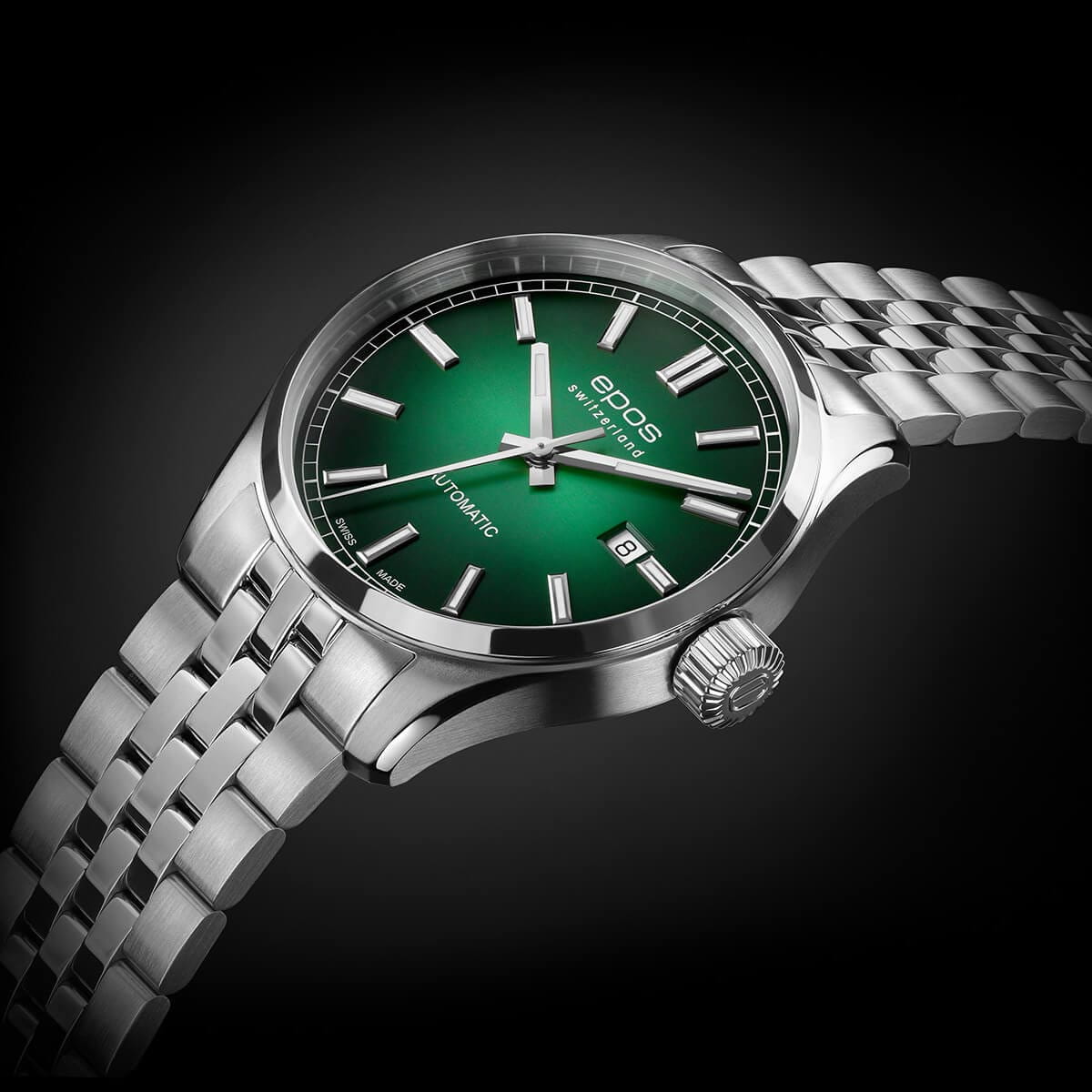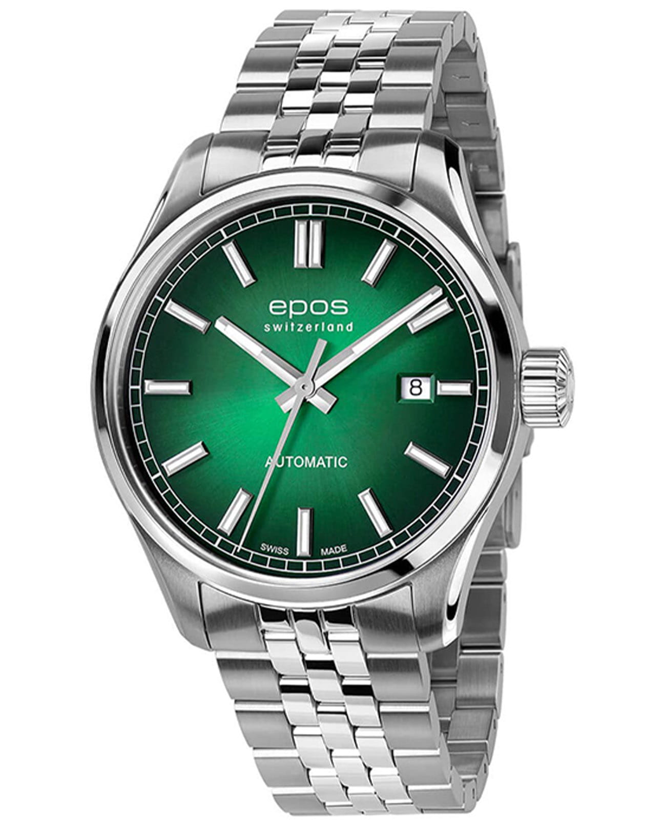 Мужские швейцарские механические часы Epos Passion 3501.132.20.13.30, механический механизм (автоматический калибр) с высокой точностью. Сапфировое стеклоСапфировое стеклоПрочный и надёжный материал из кристалла сапфира синтетического происхождения, характеризующийся особой твёрдостью и устойчивостью к царапинам и повреждениям. устойчивое к появлению царапин, обладающее высокой прозрачностью. Класс водозащиты: 100 метров, позволит плавать, нырять и заниматься другими водными видами спорта. Корпус и браслет часов изготовлены из стали. Прозрачная задняя крышка. Браслет с раскладной застёжкойРаскладная застёжкаТакой тип застёжки используется только на браслетах из металла. Она никогда не раскрывается полностью, происходит разделение на 2 и более частей. Раскладывающая застёжка снизит вероятность потери часов к минимуму.. Стрелки и метки с люминесцентным покрытиемЛюминесцентное покрытиеПозволяет считывать показания времени в темноте. Производители наносят на стрелки, часовые индексы, безель или поверхность циферблата светонакопительный состав, дающий холодное свечение.. Окошко даты находятся в положении 3 часа. Декорированный механизм.