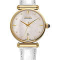 Женские швейцарские наручные часы с кварцевым механизмом с высокой точностью. Сапфировое стеклоСапфировое стеклоПрочный и надёжный материал из кристалла сапфира синтетического происхождения, характеризующийся особой твёрдостью и устойчивостью к царапинам и повреждениям. устойчивое к появлению царапин, обладающее высокой прозрачностью. Класс водозащиты: 30 метров, позволит защитить корпус от случайных брызг или капель дождя. Корпус часов изготовлен из стали с PVD-покрытиемPVDУльтратонкое покрытие наносится в технике вакуумного напыления, сочетает в себе нитрид титана особой прочности со слоем золота или оксида хрома. Несёт в себе декоративную или защитную функцию.. Кожаный ремешок с застёжкой «бабочка» с кнопкамиЗастёжка "бабочка"Такой вид застёжки дополняется предохранителями, помогающими избежать случайного раскрытия браслета. Обладают изящным исполнением. .