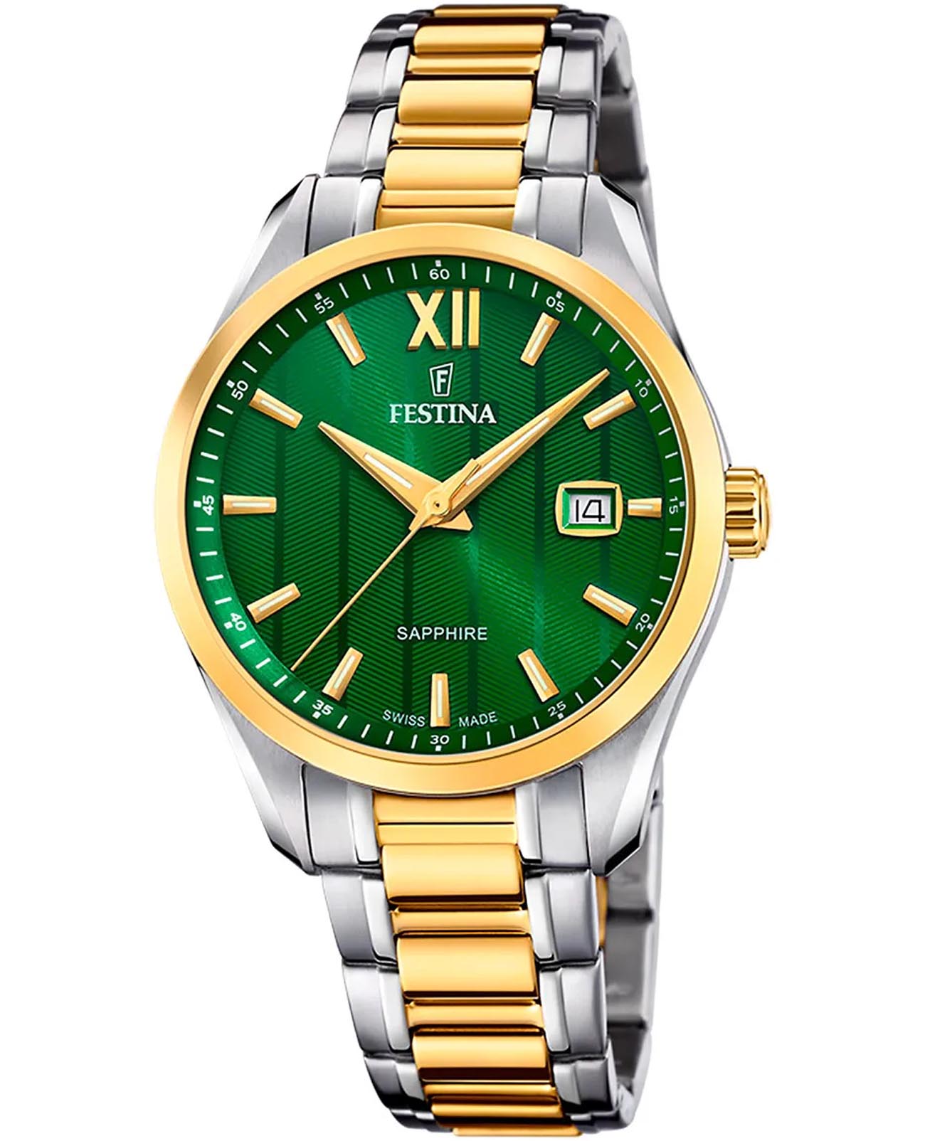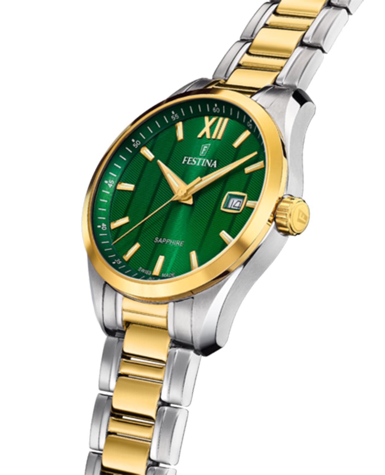 Практичные и стильные часы Festina F20027/3 с круглым корпусом на стальном браслете идеальны для современного ритма жизни. Кварцевый механизм с высокой точностью. Сапфировое стеклоСапфировое стеклоПрочный и надёжный материал из кристалла сапфира синтетического происхождения, характеризующийся особой твёрдостью и устойчивостью к царапинам и повреждениям. устойчивое к появлению царапин, обладающее высокой прозрачностью. Класс водозащиты: 50 метров, позволит защитить корпус от случайных брызг или капель дождя. Корпус часов изготовлен из нержавеющей стали. Стальной браслет с частичным IP-покрытиемIP-покрытиеМетод ионного напыления. Демонстрирует повышенную устойчивость к истиранию, окислению и химическим веществам. Под воздействием высокого давления и температуры около 1500°C молекулы металла надёжно соединяются с частицами корпуса часов. на раскладной застёжкеРаскладная застёжкаТакой тип застёжки используется только на браслетах из металла. Она никогда не раскрывается полностью, происходит разделение на 2 и более частей. Раскладывающая застёжка снизит вероятность потери часов к минимуму.. Стрелки с люминесцентным покрытиемЛюминесцентное покрытиеПозволяет считывать показания времени в темноте. Производители наносят на стрелки, часовые индексы, безель или поверхность циферблата светонакопительный состав, дающий холодное свечение.. Окошко даты находится в положении 3 часа.