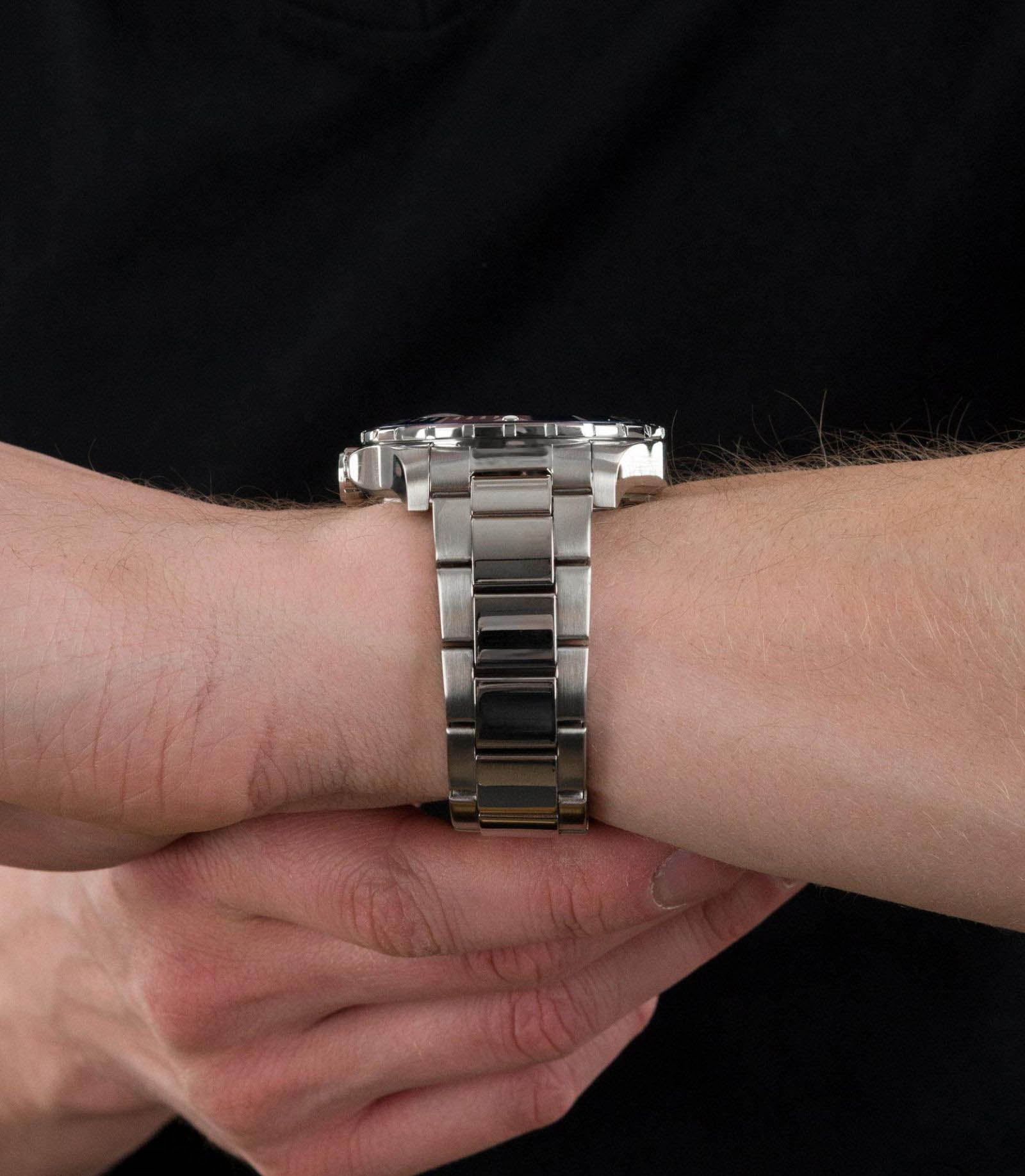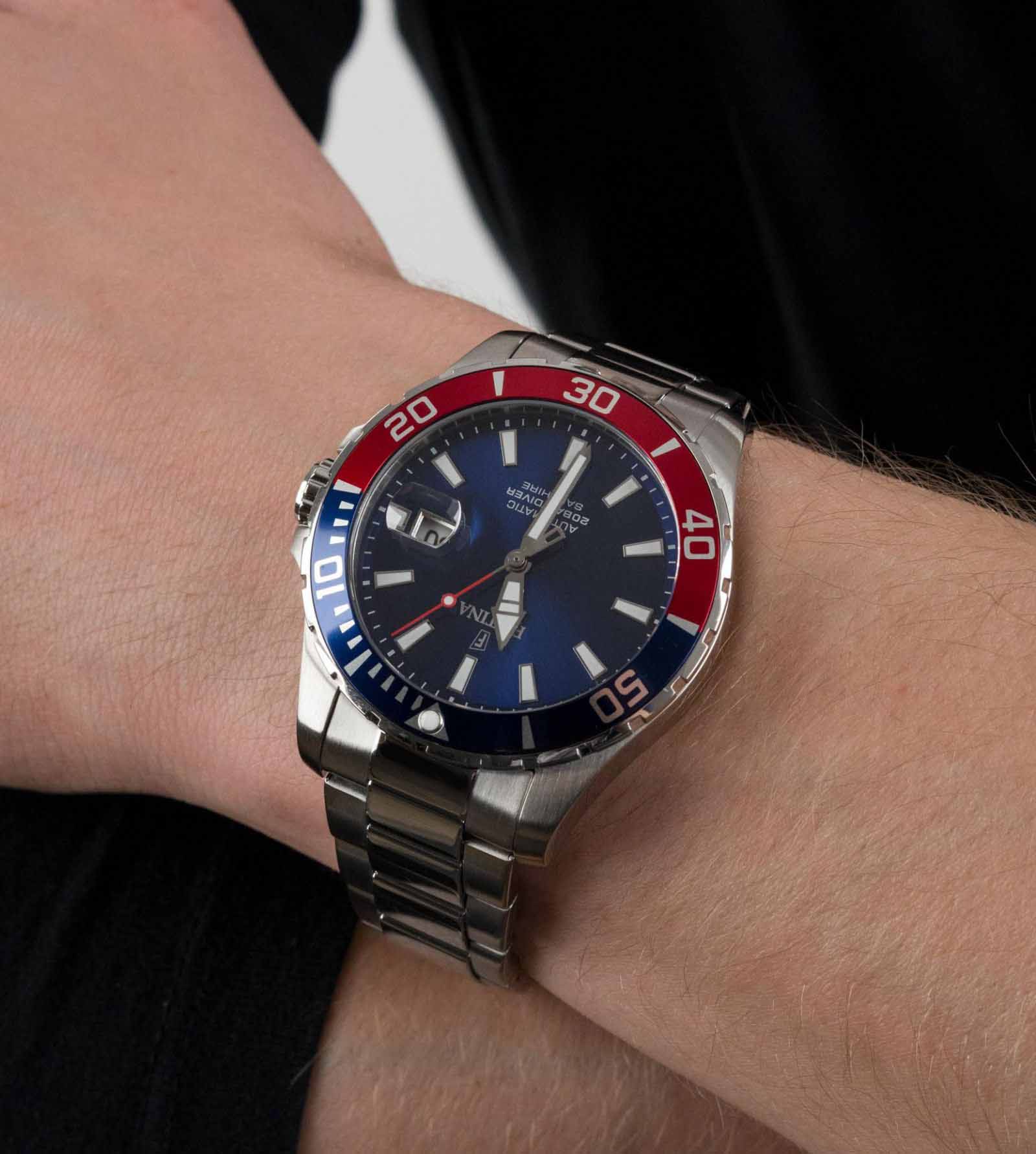 Мужские механические часы Festina Automatic F20531/5, механический механизм (автоматический калибр) с высокой точностью. Сапфировое стеклоСапфировое стеклоПрочный и надёжный материал из кристалла сапфира синтетического происхождения, характеризующийся особой твёрдостью и устойчивостью к царапинам и повреждениям. устойчивое к появлению царапин, обладающее высокой прозрачностью. Класс водозащиты: 200 метров, позволит плавать, нырять и заниматься другими водными видами спорта. Корпус часов изготовлен из стали. Стальной браслет на раскладной застёжкеРаскладная застёжкаТакой тип застёжки используется только на браслетах из металла. Она никогда не раскрывается полностью, происходит разделение на 2 и более частей. Раскладывающая застёжка снизит вероятность потери часов к минимуму.. Окошко даты находятся в положении 3 часа с увеличительным стеклом. Стрелки и метки с люминесцентным покрытиемЛюминесцентное покрытиеПозволяет считывать показания времени в темноте. Производители наносят на стрелки, часовые индексы, безель или поверхность циферблата светонакопительный состав, дающий холодное свечение., которое светится в темноте после непродолжительной зарядки на свету. Рифленая заводная головка. БезельБезельВнешний ободок, закрепляющий стекло. В спортивных часах так называется поворотное кольцо с делениями на циферблате, выполняет роль таймера – замеряет отрезки времени на шкале. Неподвижный безель – элемент декора. Однонаправленно вращающийся безель на дайверских часах позволяет фиксировать моменты погружения и выныривания на поверхность. с PVD-покрытиемPVDУльтратонкое покрытие наносится в технике вакуумного напыления, сочетает в себе нитрид титана особой прочности со слоем золота или оксида хрома. Несёт в себе декоративную или защитную функцию..