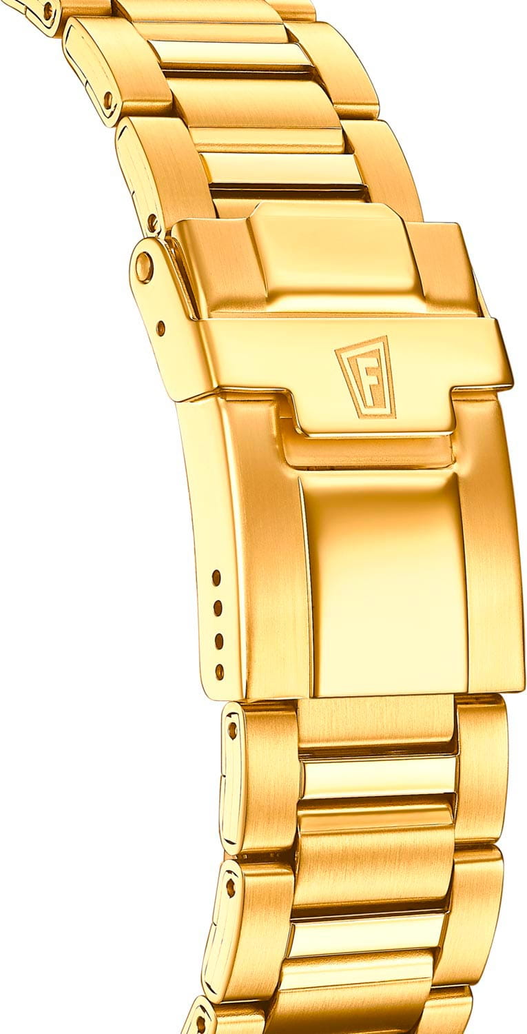 Эксклюзивный хронографХронографФункция позволяет измерять отрезки времени с особой точностью: часы, минуты, секунды. Верным признаком хронографа является наличие на циферблате 3 дополнительных окошек-счётчиков. с секундомеромСекундомерСекундоме́р — прибор, способный измерять интервалы времени с точностью до долей секунды. и тахиметромТахиметрРазмеченная шкала, располагается на ободке или безеле часов. Тахиметр позволяет рассчитать скорость на определённом участке пути, расстояние измеряется в километрах или милях., отличающийся продуманным дизайном и отделкой, придется по вкусу мужчинам, ценящим идеальное соотношение цены и качества. Минеральное стеклоМинеральное стеклоМинеральное стекло представляет собой искусственно выращенный минерал кварца. Такое стекло отличается особой устойчивостью к повреждениям и царапинам. Уступает по некоторым качествам сапфировому стеклу. устойчивое к появлению царапин, обладающее высокой прозрачностью. Циферблат с люминесцентным покрытиемЛюминесцентное покрытиеПозволяет считывать показания времени в темноте. Производители наносят на стрелки, часовые индексы, безель или поверхность циферблата светонакопительный состав, дающий холодное свечение. стрелок и меток. Корпус и браслет из стали с PVDPVDУльтратонкое покрытие наносится в технике вакуумного напыления, сочетает в себе нитрид титана особой прочности со слоем золота или оксида хрома. Несёт в себе декоративную или защитную функцию. покрытием. Класс водозащиты: 100 метров, позволит защитить корпус от случайных брызг или капель дождя. Браслет с раскладной застёжкойРаскладная застёжкаТакой тип застёжки используется только на браслетах из металла. Она никогда не раскрывается полностью, происходит разделение на 2 и более частей. Раскладывающая застёжка снизит вероятность потери часов к минимуму..