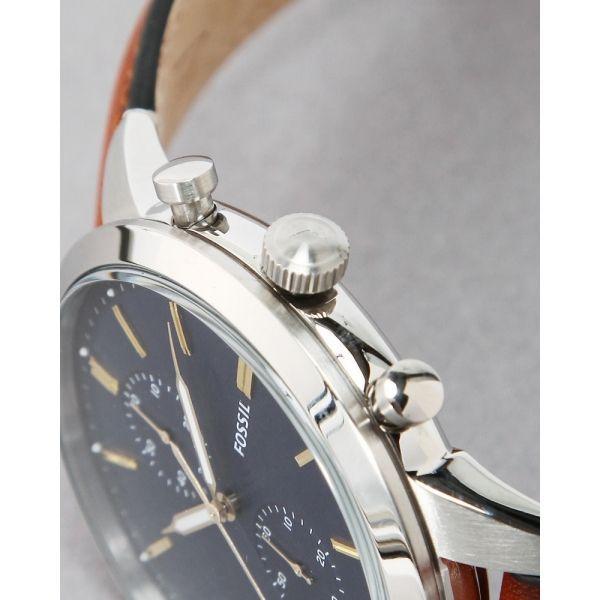 Наручные часы от популярного американского бренда Fossil - они будут замечательно смотреться как с повседневным стилем одежды, так и костюмом; браслет: кожа; корпус: сталь; цвет браслета: коричневый; цвет корпуса: серебро; цвет циферблата: синий; ширина браслета: 22MM;