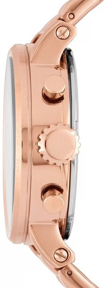 Женские часы-хронографХронографФункция позволяет измерять отрезки времени с особой точностью: часы, минуты, секунды. Верным признаком хронографа является наличие на циферблате 3 дополнительных окошек-счётчиков. с кварцевым механизмом. Корпус часов изготовлен из нержавеющей стали с PVD-покрытиемPVDУльтратонкое покрытие наносится в технике вакуумного напыления, сочетает в себе нитрид титана особой прочности со слоем золота или оксида хрома. Несёт в себе декоративную или защитную функцию.. Минеральное стеклоМинеральное стеклоМинеральное стекло представляет собой искусственно выращенный минерал кварца. Такое стекло отличается особой устойчивостью к повреждениям и царапинам. Уступает по некоторым качествам сапфировому стеклу. устойчивое к появлению царапин, обладающее высокой прозрачностью. Водозащита: 50 метров, позволит защитить корпус от случайных брызг или капель дождя. Стальной браслет с PVD-покрытиемPVDУльтратонкое покрытие наносится в технике вакуумного напыления, сочетает в себе нитрид титана особой прочности со слоем золота или оксида хрома. Несёт в себе декоративную или защитную функцию. на раскладной застёжкеРаскладная застёжкаТакой тип застёжки используется только на браслетах из металла. Она никогда не раскрывается полностью, происходит разделение на 2 и более частей. Раскладывающая застёжка снизит вероятность потери часов к минимуму..