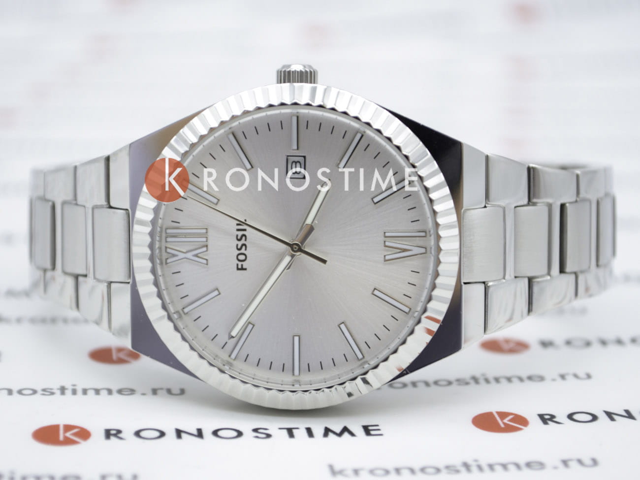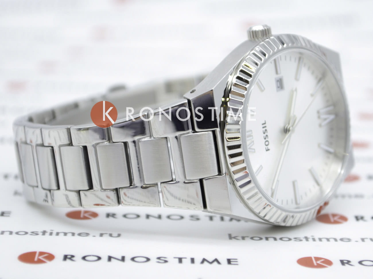 Женские американские кварцевые часы с минеральным стекломМинеральное стеклоМинеральное стекло представляет собой искусственно выращенный минерал кварца. Такое стекло отличается особой устойчивостью к повреждениям и царапинам. Уступает по некоторым качествам сапфировому стеклу. Fossil Scarlette ES5300, кварцевый механизм с высокой точностью. Класс водозащиты: 50 метров, позволит защитить корпус от случайных брызг или капель дождя. Корпус и браслет часов изготовлены из нержавеющей стали с IP-покрытиемIP-покрытиеМетод ионного напыления. Демонстрирует повышенную устойчивость к истиранию, окислению и химическим веществам. Под воздействием высокого давления и температуры около 1500°C молекулы металла надёжно соединяются с частицами корпуса часов.. Стальной браслет с раскладной застёжкойРаскладная застёжкаТакой тип застёжки используется только на браслетах из металла. Она никогда не раскрывается полностью, происходит разделение на 2 и более частей. Раскладывающая застёжка снизит вероятность потери часов к минимуму.. Окошко даты находятся в положении 3 часа. Стрелки и метки с люминесцентным покрытиемЛюминесцентное покрытиеПозволяет считывать показания времени в темноте. Производители наносят на стрелки, часовые индексы, безель или поверхность циферблата светонакопительный состав, дающий холодное свечение..