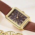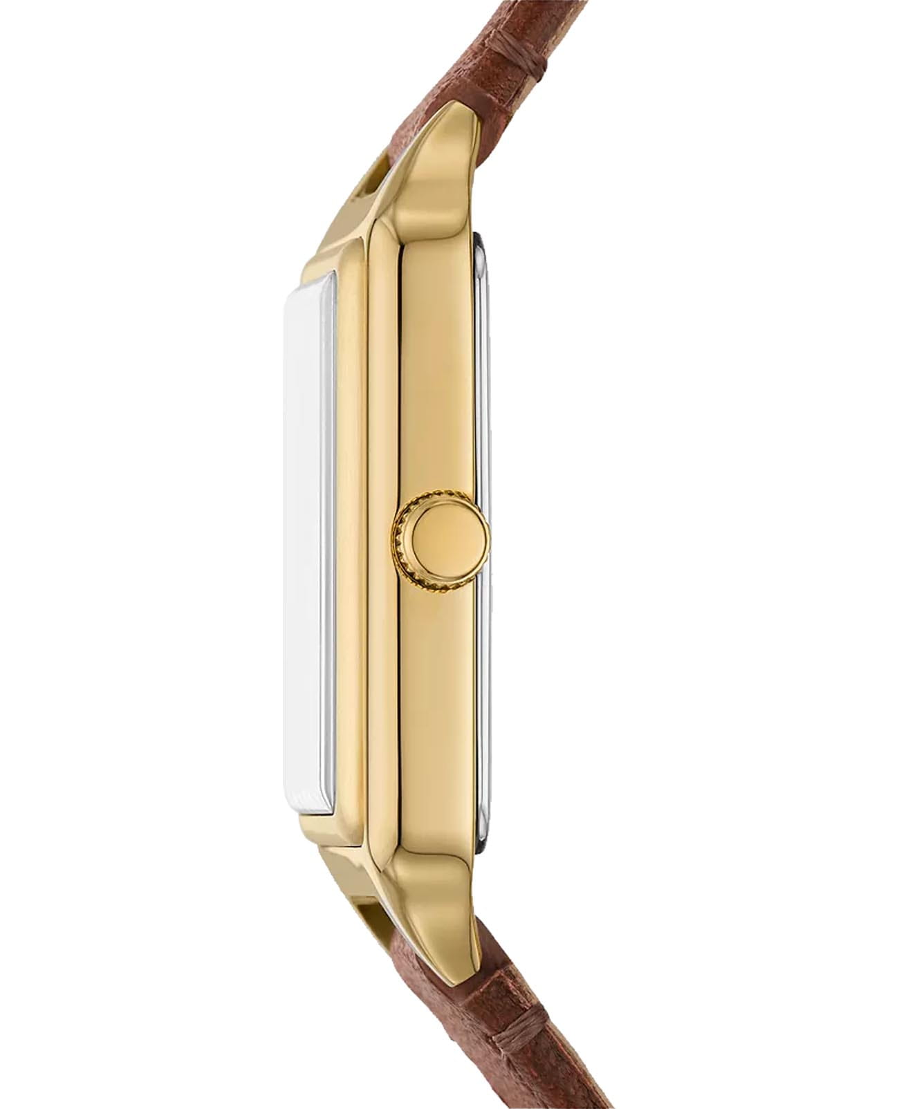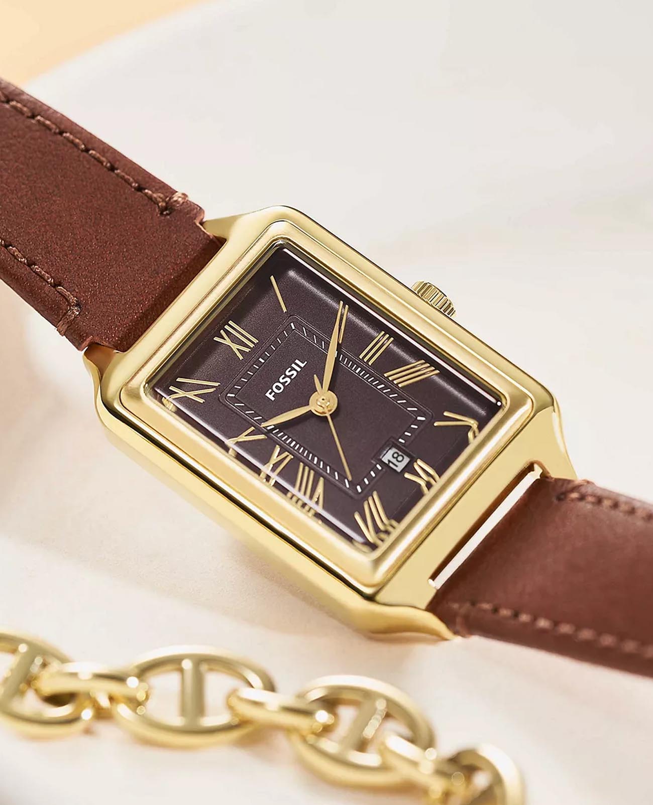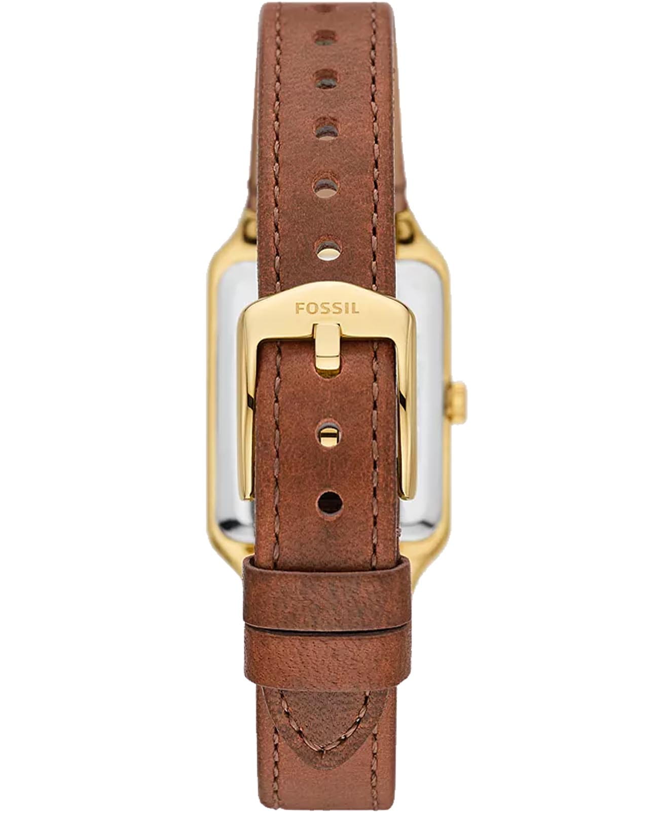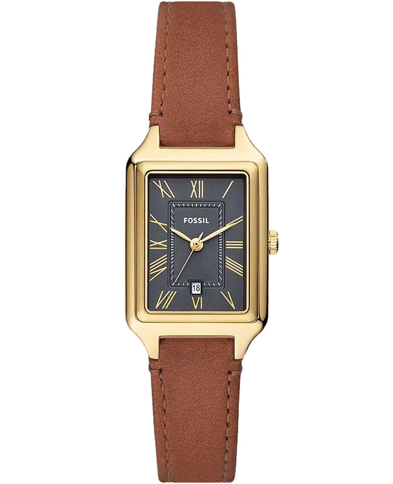 Женские американские часы с минеральным стекломМинеральное стеклоМинеральное стекло представляет собой искусственно выращенный минерал кварца. Такое стекло отличается особой устойчивостью к повреждениям и царапинам. Уступает по некоторым качествам сапфировому стеклу. Fossil Raquel ES5303, кварцевый механизм с высокой точностью. Корпус часов изготовлен из нержавеющей стали с IP-покрытиемIP-покрытиеМетод ионного напыления. Демонстрирует повышенную устойчивость к истиранию, окислению и химическим веществам. Под воздействием высокого давления и температуры около 1500°C молекулы металла надёжно соединяются с частицами корпуса часов.. Класс водозащиты: 50 метров, позволит защитить корпус от случайных брызг или капель дождя. Кожаный ремешок на стандартной застёжке. Окошко даты находится в положении 6 часов.