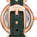 Часы Fossil ES5370 представляют собой стильный аксессуар, который станет отличным дополнением к вашему образу. Эти женские наручные часы, произведенные в США, оснащены надежным кварцевым механизмом. Корпус выполнен из стали с розово-золотистым IP-покрытиемIP-покрытиеМетод ионного напыления. Демонстрирует повышенную устойчивость к истиранию, окислению и химическим веществам. Под воздействием высокого давления и температуры около 1500°C молекулы металла надёжно соединяются с частицами корпуса часов., а безельБезельВнешний ободок, закрепляющий стекло. В спортивных часах так называется поворотное кольцо с делениями на циферблате, выполняет роль таймера – замеряет отрезки времени на шкале. Неподвижный безель – элемент декора. Однонаправленно вращающийся безель на дайверских часах позволяет фиксировать моменты погружения и выныривания на поверхность. украшен кристаллами, что придает часам утонченный и изысканный вид. Зеленый циферблат, изготовленный по технологии Sunray, создает эффект солнечных лучей и привлекает внимание своей глубиной. Метки в виде штрихов и римских цифр VI и XII подчеркивают классический стиль, а рифленая заводная головка добавляет изящества. Стрелки с люминесцентным покрытиемЛюминесцентное покрытиеПозволяет считывать показания времени в темноте. Производители наносят на стрелки, часовые индексы, безель или поверхность циферблата светонакопительный состав, дающий холодное свечение. позволяют легко считывать время даже в условиях низкой освещенности. Часы комплектуются фирменным кожаным ремешком LiteHide с классической застежкой, который обеспечивает комфортное ношение и надежную фиксацию на запястье. Водозащита 50WR позволяет не беспокоиться о случайных брызгах воды. Минеральное стеклоМинеральное стеклоМинеральное стекло представляет собой искусственно выращенный минерал кварца. Такое стекло отличается особой устойчивостью к повреждениям и царапинам. Уступает по некоторым качествам сапфировому стеклу. защищает циферблат от царапин и повреждений. С диаметром корпуса 28 мм и шириной ремешка 12 мм, эти часы идеально подойдут для тех, кто ценит элегантность и качество.