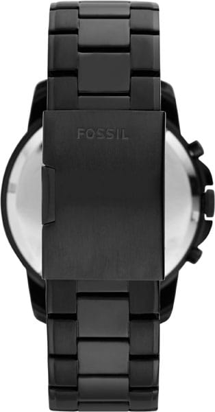 Мужские часы-хронографХронографФункция позволяет измерять отрезки времени с особой точностью: часы, минуты, секунды. Верным признаком хронографа является наличие на циферблате 3 дополнительных окошек-счётчиков. Fossil Bannon FS4832. Корпус часов изготовлен из стали с IP-покрытиемIP-покрытиеМетод ионного напыления. Демонстрирует повышенную устойчивость к истиранию, окислению и химическим веществам. Под воздействием высокого давления и температуры около 1500°C молекулы металла надёжно соединяются с частицами корпуса часов.. Класс водозащиты: 50 метров, позволит защитить корпус от случайных брызг или капель дождя. Стрелки и метки с люминесцентным покрытиемЛюминесцентное покрытиеПозволяет считывать показания времени в темноте. Производители наносят на стрелки, часовые индексы, безель или поверхность циферблата светонакопительный состав, дающий холодное свечение.. Стальной браслет с IP-покрытиемIP-покрытиеМетод ионного напыления. Демонстрирует повышенную устойчивость к истиранию, окислению и химическим веществам. Под воздействием высокого давления и температуры около 1500°C молекулы металла надёжно соединяются с частицами корпуса часов. на застёжке-бабочке с кнопкамиЗастёжка "бабочка"Такой вид застёжки дополняется предохранителями, помогающими избежать случайного раскрытия браслета. Обладают изящным исполнением. .