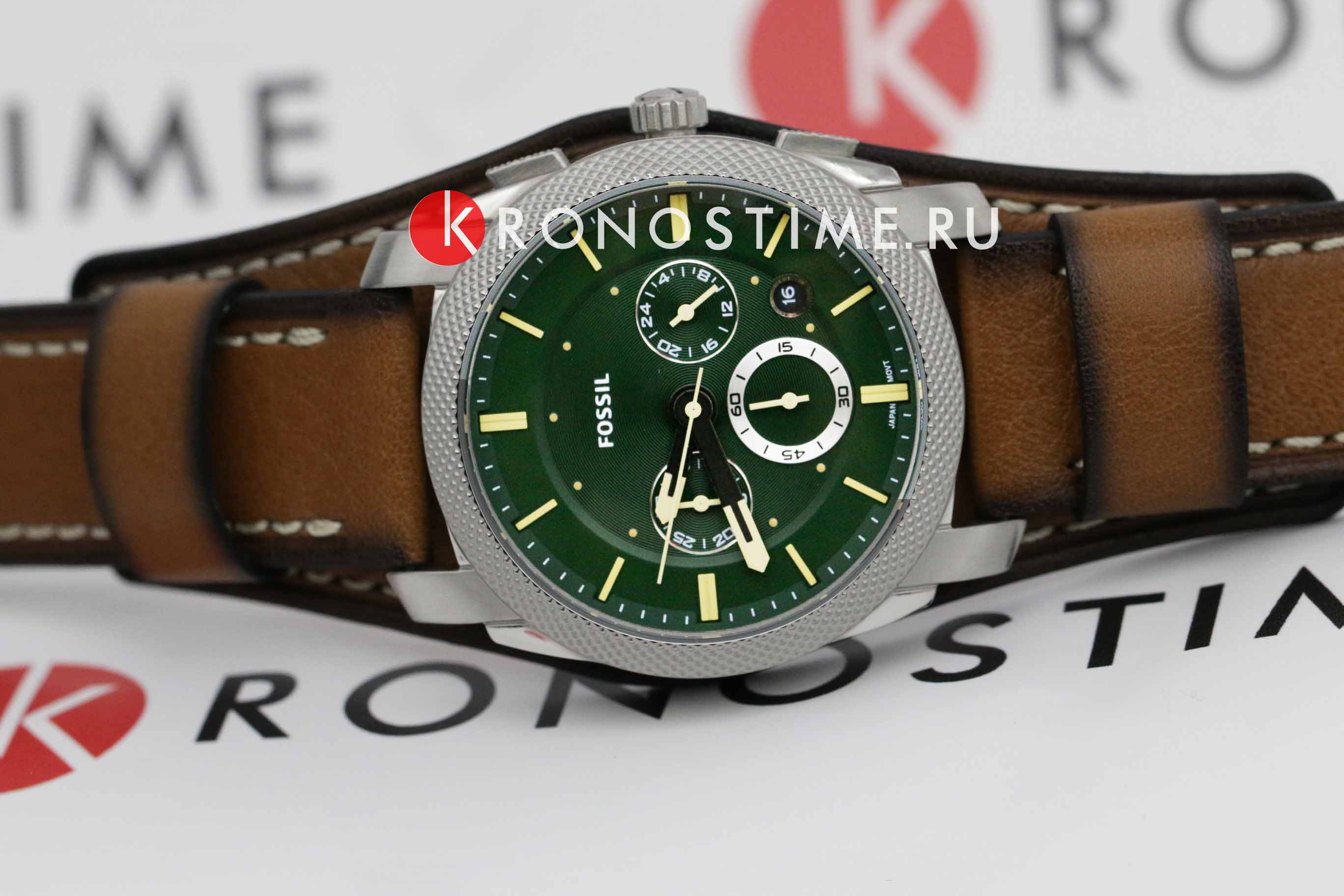 Мужские американские часы-хронографХронографФункция позволяет измерять отрезки времени с особой точностью: часы, минуты, секунды. Верным признаком хронографа является наличие на циферблате 3 дополнительных окошек-счётчиков. с секундомеромСекундомерСекундоме́р — прибор, способный измерять интервалы времени с точностью до долей секунды. Fossil Machine FS5962, кварцевый механизм с высокой точностью. Класс водозащиты: 50 метров, позволит защитить корпус от случайных брызг или капель дождя. Корпус часов изготовлен из стали. Метки в виде штрихов. Окошко даты находится между часовыми отметками 4 и 5. Рифленая заводная головка. Ремешок из эко-кожи с классической застежкой. Рифленая заводная головка и безельБезельВнешний ободок, закрепляющий стекло. В спортивных часах так называется поворотное кольцо с делениями на циферблате, выполняет роль таймера – замеряет отрезки времени на шкале. Неподвижный безель – элемент декора. Однонаправленно вращающийся безель на дайверских часах позволяет фиксировать моменты погружения и выныривания на поверхность..