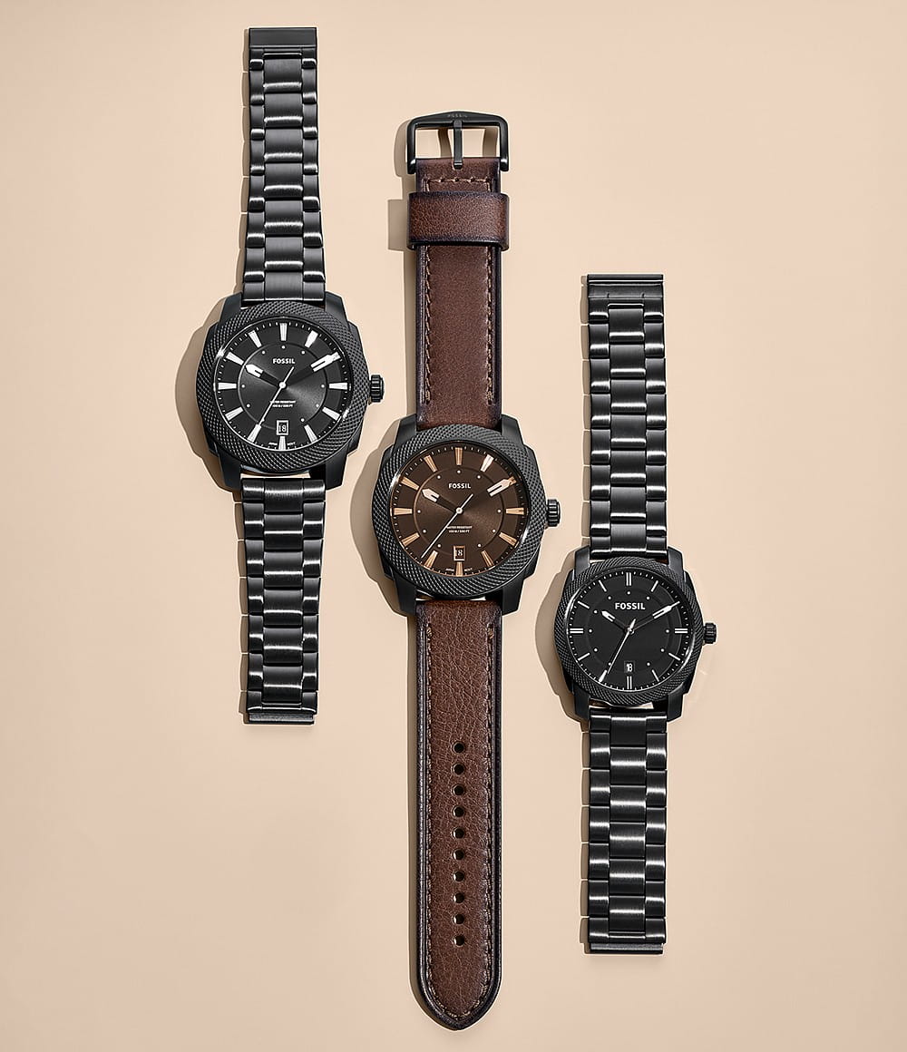 Мужские часы с минеральным стекломМинеральное стеклоМинеральное стекло представляет собой искусственно выращенный минерал кварца. Такое стекло отличается особой устойчивостью к повреждениям и царапинам. Уступает по некоторым качествам сапфировому стеклу. Fossil Machine FS5972, кварцевый механизм с высокой точностью. Минеральное стеклоМинеральное стеклоМинеральное стекло представляет собой искусственно выращенный минерал кварца. Такое стекло отличается особой устойчивостью к повреждениям и царапинам. Уступает по некоторым качествам сапфировому стеклу. устойчивое к мелким механическим повреждениям. Класс водозащиты: 100 метров, позволит плавать, нырять и заниматься другими водными видами спорта. Корпус часов изготовлен из стали с IP-покрытиемIP-покрытиеМетод ионного напыления. Демонстрирует повышенную устойчивость к истиранию, окислению и химическим веществам. Под воздействием высокого давления и температуры около 1500°C молекулы металла надёжно соединяются с частицами корпуса часов.. Кожаный ремешок на стандартной застёжке. Метки в виде штрихов. Окошко даты находится в положении 6 часов.