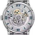 Мужские механические часы-скелетоны с минеральным стекломМинеральное стеклоМинеральное стекло представляет собой искусственно выращенный минерал кварца. Такое стекло отличается особой устойчивостью к повреждениям и царапинам. Уступает по некоторым качествам сапфировому стеклу. Fossil Townsman ME3260, механический механизм (автоматический калибр) с высокой точностью. Класс водозащиты: 50 метров, позволит защитить корпус от случайных брызг или капель дождя. Корпус часов изготовлен из стали с IP-покрытиемIP-покрытиеМетод ионного напыления. Демонстрирует повышенную устойчивость к истиранию, окислению и химическим веществам. Под воздействием высокого давления и температуры около 1500°C молекулы металла надёжно соединяются с частицами корпуса часов.. Метки выполнены в виде римских цифр. Рифленая заводная головка расположена с правой стороны корпуса. Циферблат в виде скелета с бронзовыми элементами. Стальной браслет на раскладной застёжкеРаскладная застёжкаТакой тип застёжки используется только на браслетах из металла. Она никогда не раскрывается полностью, происходит разделение на 2 и более частей. Раскладывающая застёжка снизит вероятность потери часов к минимуму..