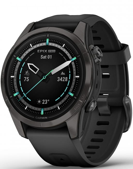 Умные многофункциональные мужские часы Garmin Epix Pro (Gen 2) 010-02802-15, электронный механизм с высокой точностью. Класс водозащиты: 100 метров, позволит плавать, нырять и заниматься другими водными видами спорта. Стальной корпус. Циферблат с сапфировым стекломСапфировое стеклоПрочный и надёжный материал из кристалла сапфира синтетического происхождения, характеризующийся особой твёрдостью и устойчивостью к царапинам и повреждениям.. Экран с светодиодной подсветкойСветодиодная подсветкаСветодиодная или LED-подсветка обеспечивает появление яркого холодного свечения за счёт LED-элементов - маленьких лампочек. Они потребляют минимальное количество энергии, чаще всего можно встретить 1 светодиод, в нижней части циферблата.. Силиконовый ремешок на стандартной застёжке. Безель из титана с DLC-покрытиемDLC-покрытиеDiamond like carbon - одно из лучших видов покрытия, представляющее собой углерод с алмазными свойствами. На поверхность материала наносятся распавшиеся молекулы углерода, превращающиеся в плёнку из алмазоподобных связей, которая перенимает твёрдость алмаза.