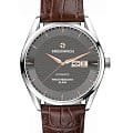 Мужские часы с минеральным стекломМинеральное стеклоМинеральное стекло представляет собой искусственно выращенный минерал кварца. Такое стекло отличается особой устойчивостью к повреждениям и царапинам. Уступает по некоторым качествам сапфировому стеклу. Greenwich Good Luck Classic GW 074.12.34, представляют собой классический вариант для повседневной носки. В центральной части циферблата — отличительная черта моделей этой серии: гильоше, объемные линии которого напоминают волны. Обратите внимание на форму пластины, где крепятся накладные риски: она сделана в форме латинской буквы G, первой буквы в названии бренда. Часы характеризуются традиционными формами, лаконичным исполнением, что делает модель элегантным дополнением к деловому костюму. Сквозь прозрачную заднюю крышку вы увидите детали механизма TMI с декорированным ротором: на нем выгравировано изображение символа английских моряков — парусника. Ремешок коричневого цвета выполнен из натуральной кожи с прошивкой в тон. Дизайн, актуальный для любого современного образа, и надежность используемых материалов делают автоматические часы Greenwich удобным и стильным аксессуаром на каждый день.